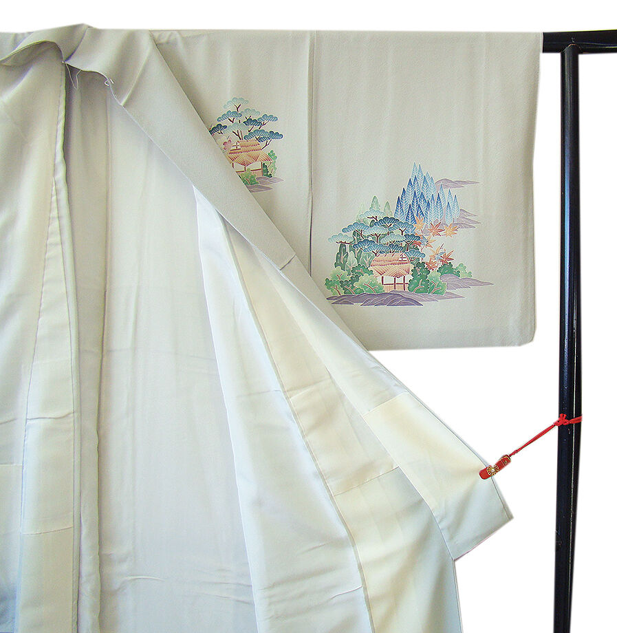 | 商品説明 | こちらのお品は「袷」でございますので、10月~5月までお召頂ければと思います。 フォーマルシーンに是非お召頂きたい加賀友禅作家、「森田耕三」氏作の慶事の席にも 優麗艶美に愛でるやわらかな佇まいに心魅了される高級訪問着です。 加賀百万石の城下町には、古くから「加賀染」といわれる染色法がありました。 京の都で画期的な友禅染めを大流行させた宮崎友禅斎が晩年に加賀へ戻り、 その技法を伝えたことが、加賀友禅の基礎となったとされております。 繊細な意匠の美しさ、その世界観を存分にご堪能頂きたい希少な加賀友禅を施したお品は サラリとしたしなやかな風合いは大変にしなやかで柔らかな手触りで、 しっとりとした滑らかな生地は重めの上質な極上ちりめん地の生地、 淡い灰青色地に四季折々の花木や立木柄等の染柄、 美しく伸びやかに、そして丁寧に丁寧に染め描かれた意匠は作家の穏やかな思想が溢れ 感性豊かに、和の色彩の組み合わせを見事に描き出した逸品です。 着姿の美しさはさすがの本加賀友禅、品格をよりいっそう絢爛たる美しさで満たす事でしょう。 八掛は灰黄緑色(正絹)、幅広い年代の方にお召し頂け、 本加賀友禅作家、「森田耕三」氏の落款入り、背には「横木瓜」の紋1ヶ入っております。 |