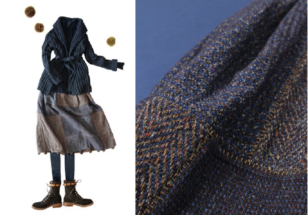 ツィードらしいハリ感やふっくらとした風合いはそのままに、 軽さを重視した二重織のツィードが生まれました。