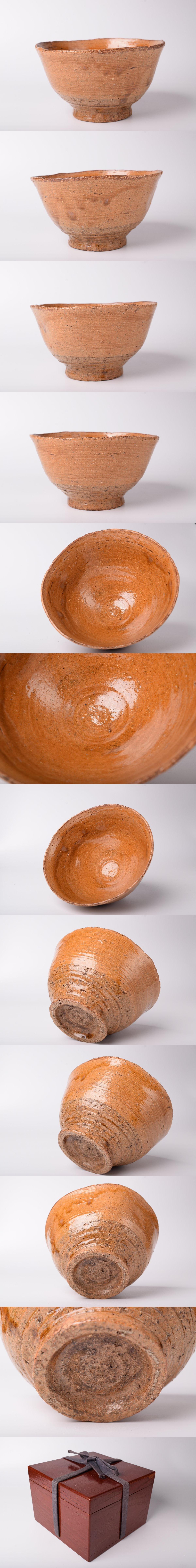 【茶道具】伊羅保茶碗 写し (飴釉/赤伊羅保風) 時代漆箱入り 艶やかな逸品 收藏