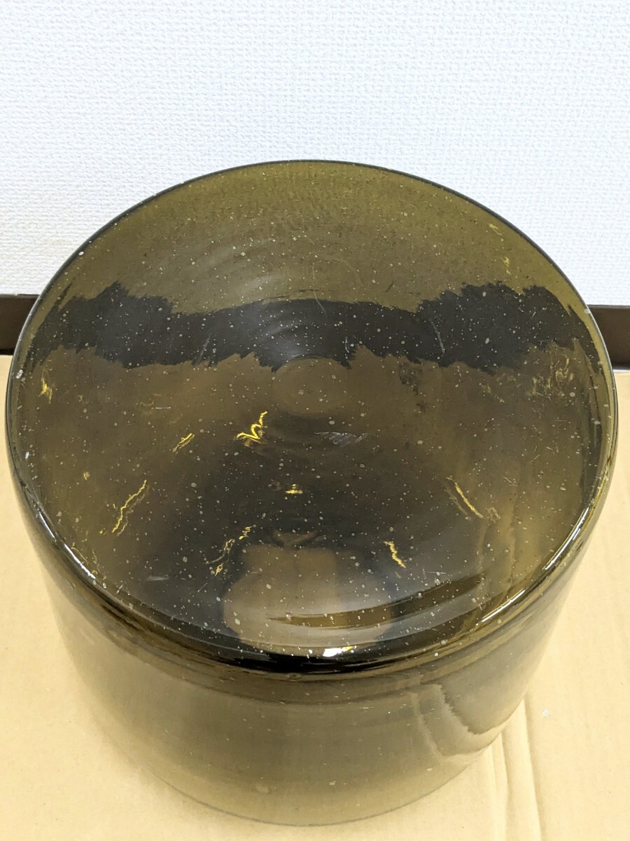 ・フタの一部が割れており、その周辺にヒビもあります。元々密閉瓶ではありませんが、フタが割れたことによりフタが動きやすくなっております。