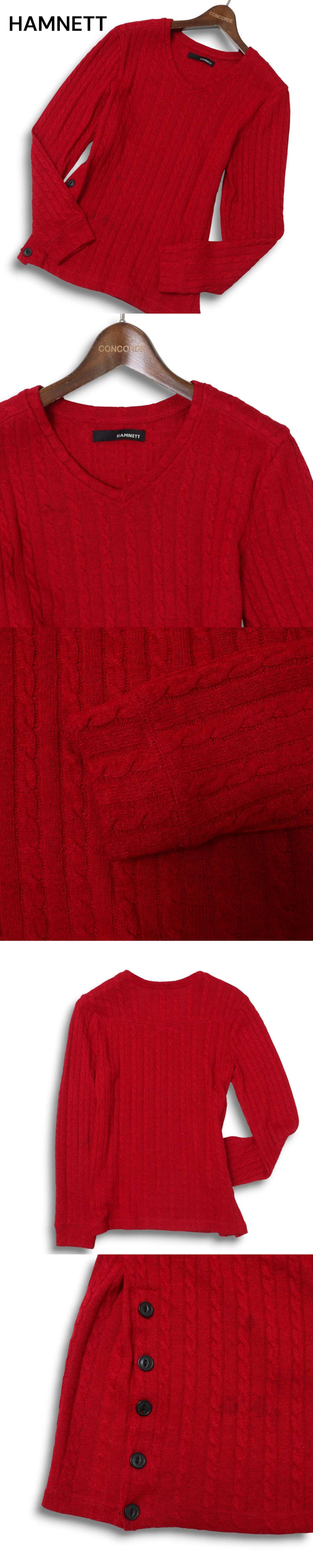 HAMNETT キャサリン ハムネット サイドボタン★ Vネック ケーブル編み ニット セーター Sz.M メンズ 收藏