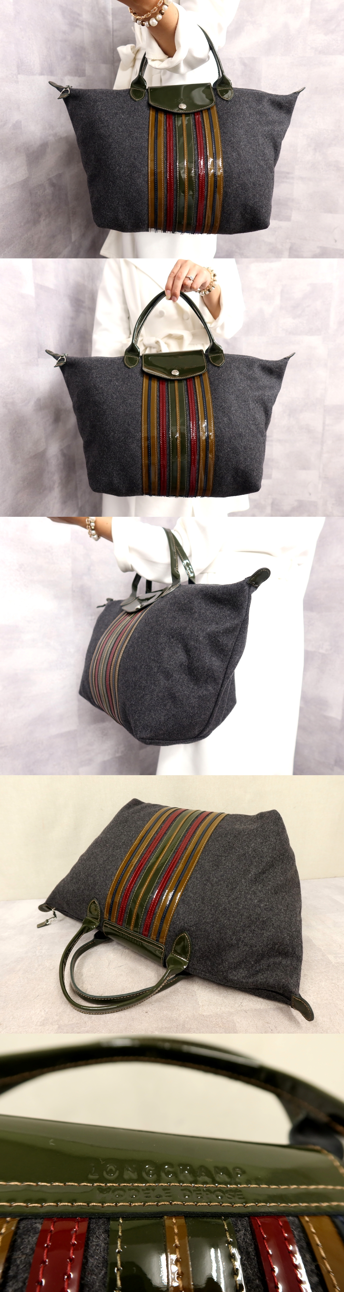 ●超美品●ロンシャン●ル プリアージュ●ウール エナメル パテント レザー 本革●トート バッグ●マルチカラー●SV金具●B5 収納●Js62322 收藏