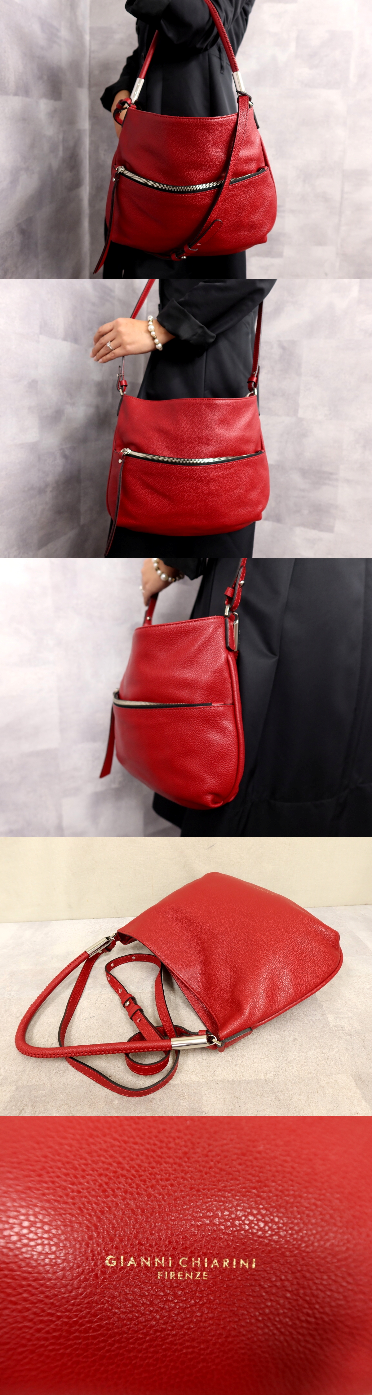 ●超美品●新品同様●GIANNI CHIARINI ジャンニキアリーニ●カーフ レザー 本革●2way ショルダー バッグ●赤●シルバー金具●Js62366 收藏