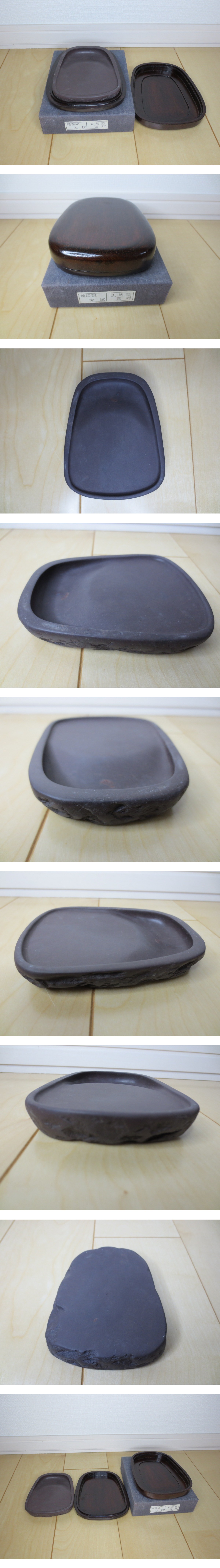 端渓硯★宋抗★天然型/四寸★唐木ケース★ミニ硯 收藏