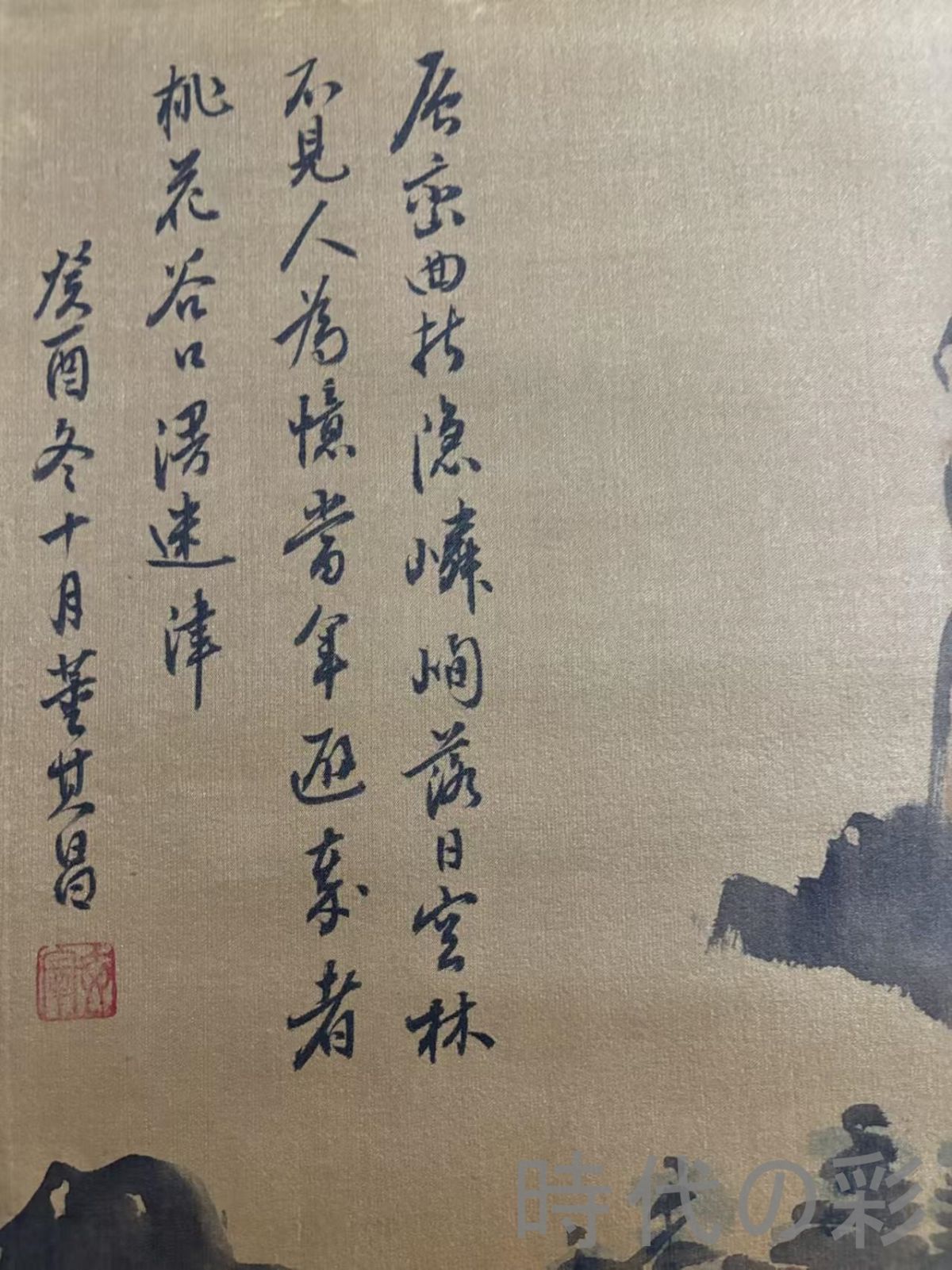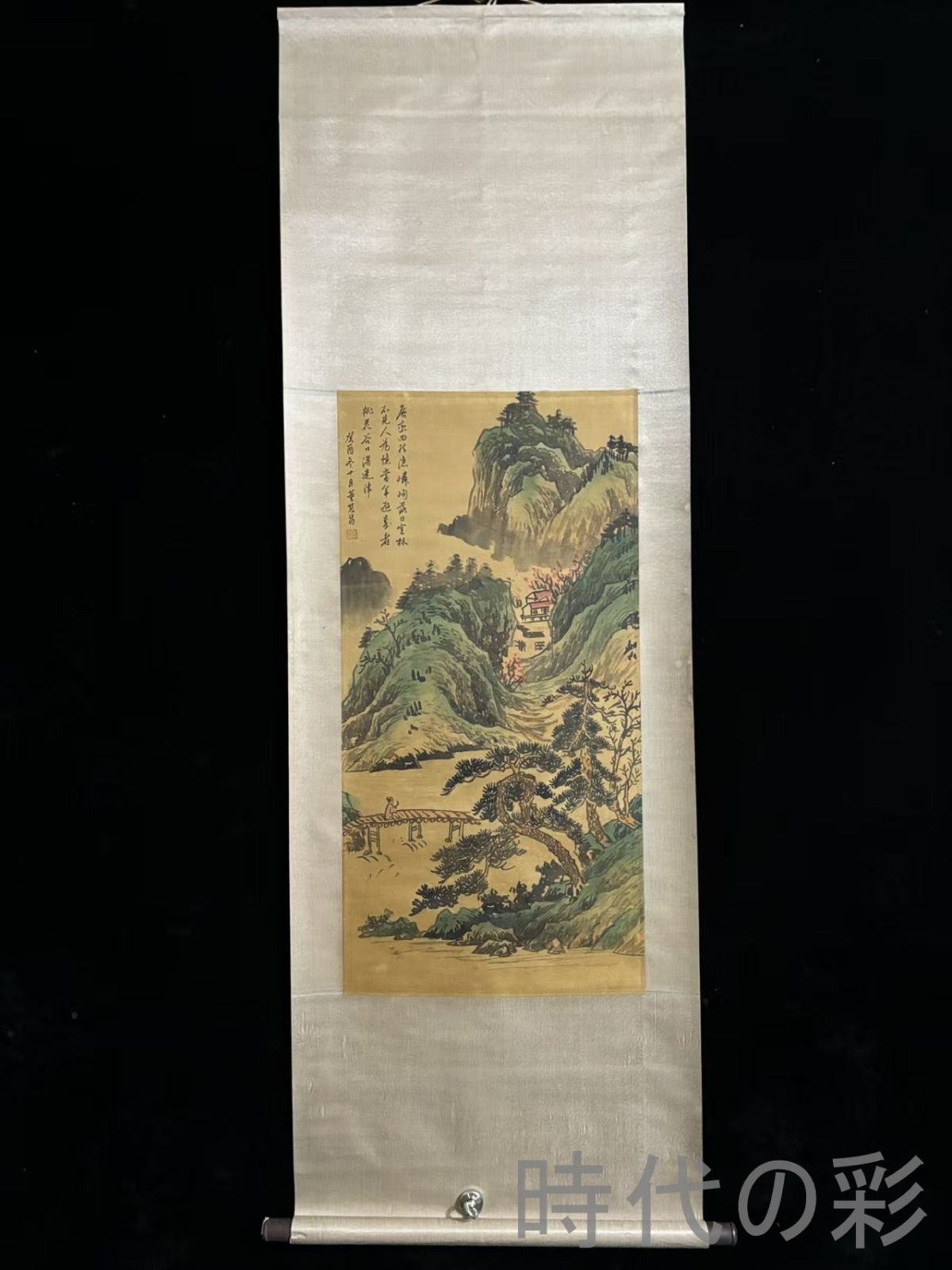 【美の継承】中国古美術.旧蔵.董其昌印款.山水画.中堂画.純手絵.肉筆.三尺絹本.文人画.書房置物.古書畫.骨董美術品.掛軸.R07111704 收藏