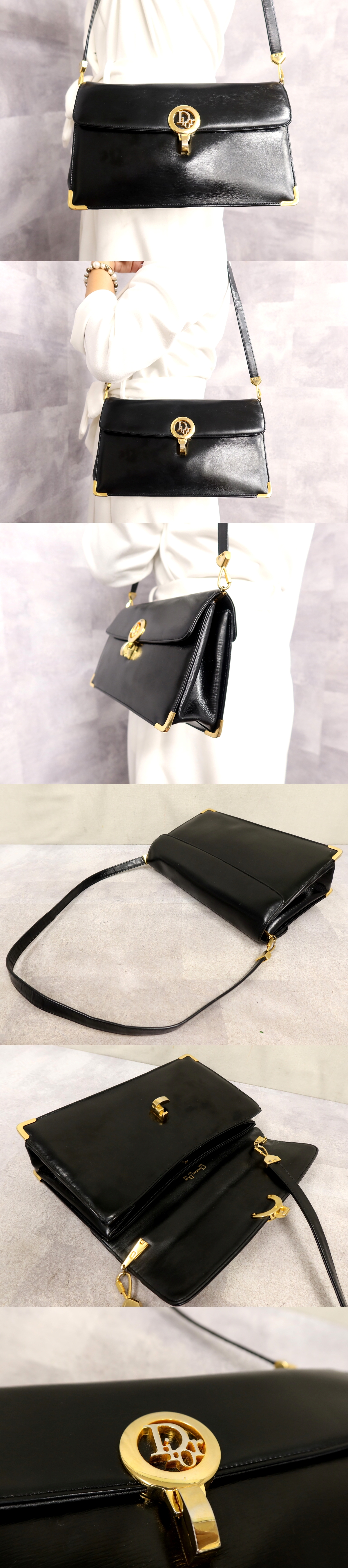 ●超美品●Christian Dior クリスチャン・ディオール●カーフ レザー 本革●ショルダー バッグ●黒●ゴールド金具●ヴィンテージ●Js62578 收藏