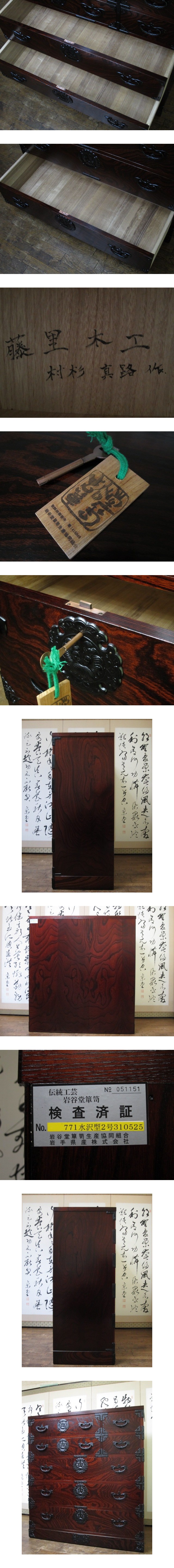 美品 最高級 藤里木工『村杉 真路』作 伝統工芸 欅材 拭き漆塗 771水沢型2号 民芸 岩谷堂箪笥 鍵付き/衣装箪笥/時代箪笥/整理箪笥/和家具 收藏
