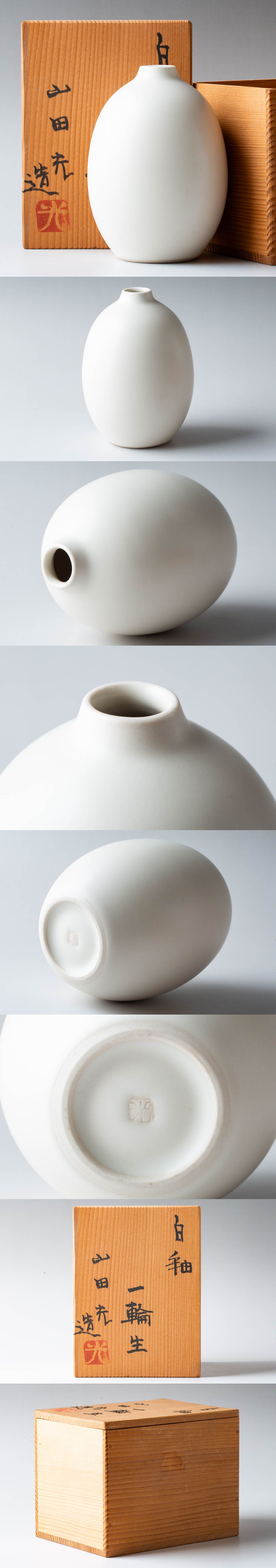 山田光造 白釉 一輪生 花瓶 花生 一輪差し 花器 華道具 茶道具 時代物 骨董品 共箱付 #39988 收藏