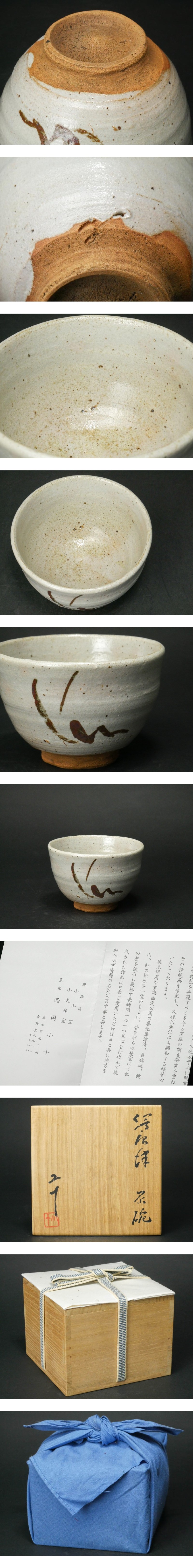 【 幸 茶匠の蔵 】『西岡小十』造 絵唐津 野草図 茶碗 共箱◆当店保証 茶道具『茶人の言葉』 收藏