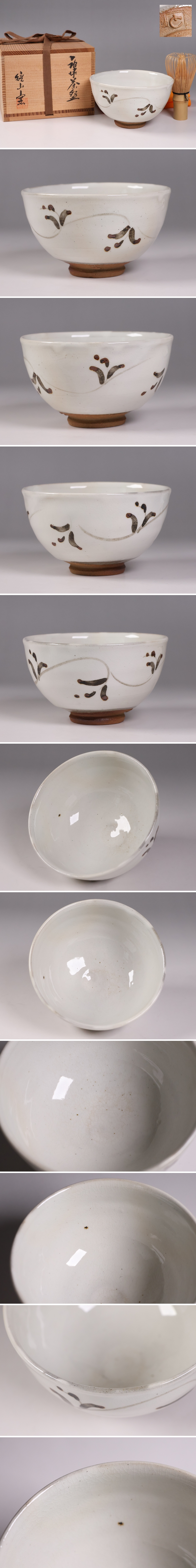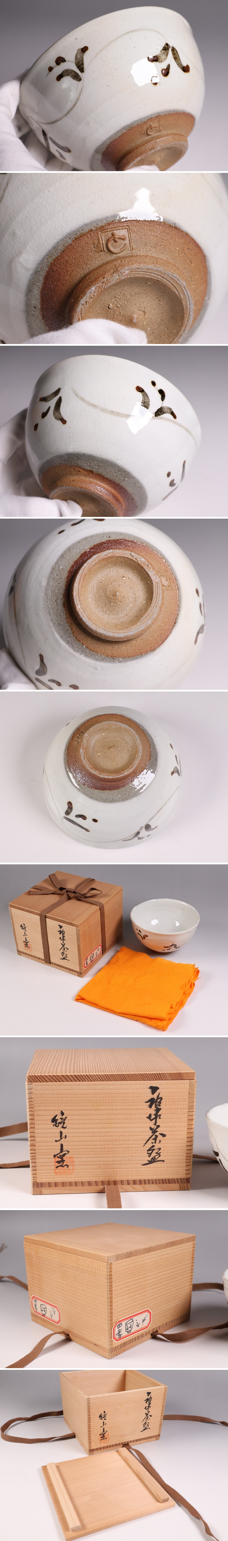 茶道具 鏡山窯 井上東也 唐津 茶碗 共箱 黄布 陶芸【MB86】 收藏