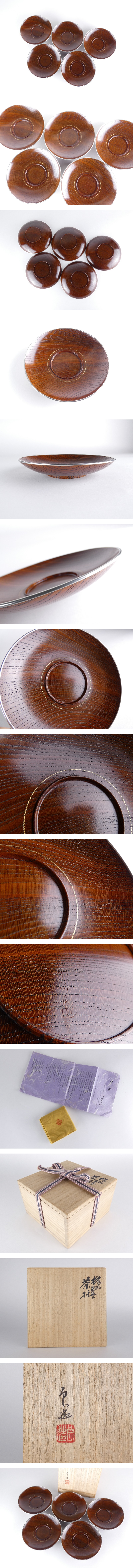 【都屋】人間国宝 川北良造「欅造 茶托」5客 共箱 茶道具 a8 0106 收藏