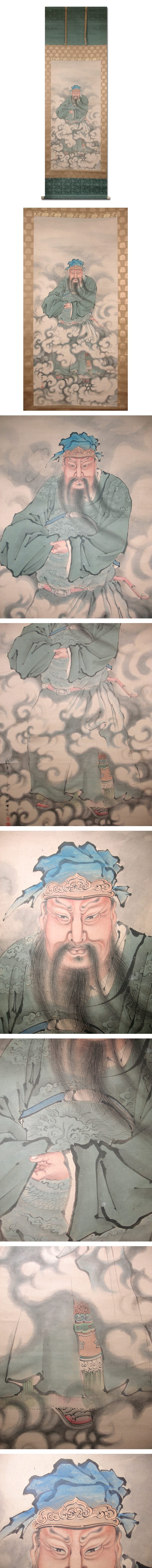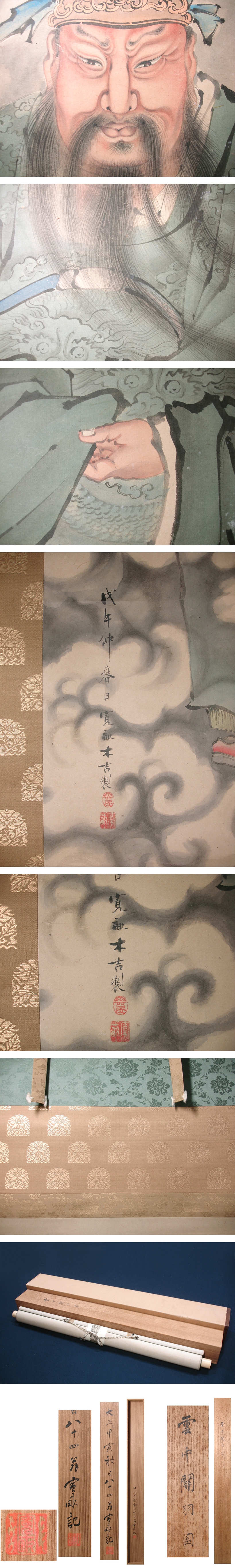 慶應◆帝室技芸員【荒木寛畝】真筆 紙本著色 雲中関羽図 大幅画 若き時代の大作! 共箱付 收藏