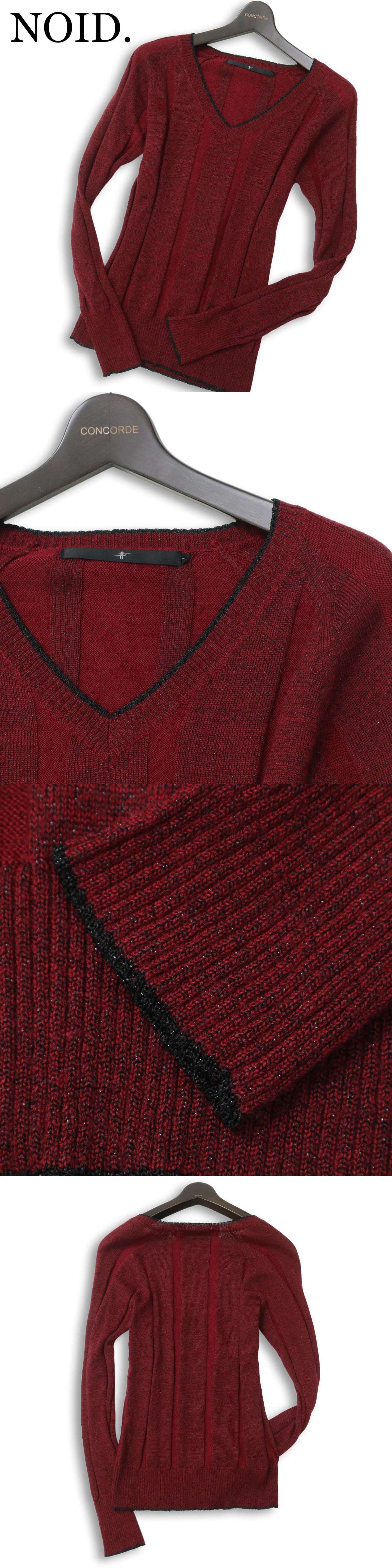 NOID. ノーアイディー 秋冬 ラメ ニット★ ウール混 Vネック ストライプ セーター Sz.1 メンズ 收藏