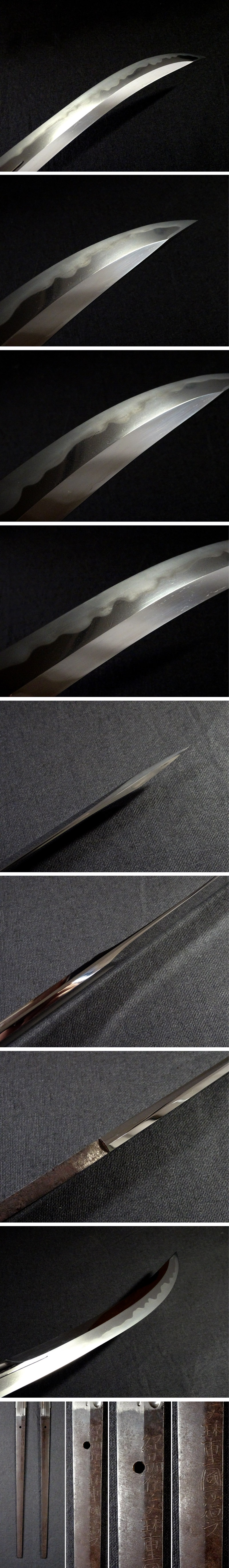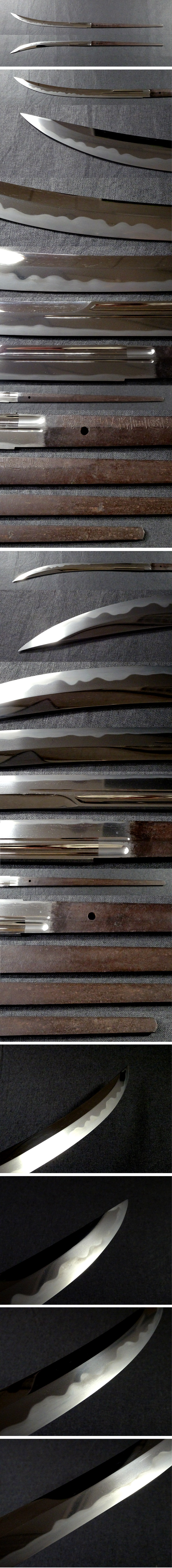 極上品   大きな傷みもなく、非常に綺麗な状態です。    刃切れ、ふくれはございません。    白鞘も非常に綺麗ですが、僅かなあたり傷、汚れ等の劣化は見られます。  また、登録証がテープによって刀袋に付けて保管されていたため、袋と登録証にテープ跡はございます。  ご了承下さい。