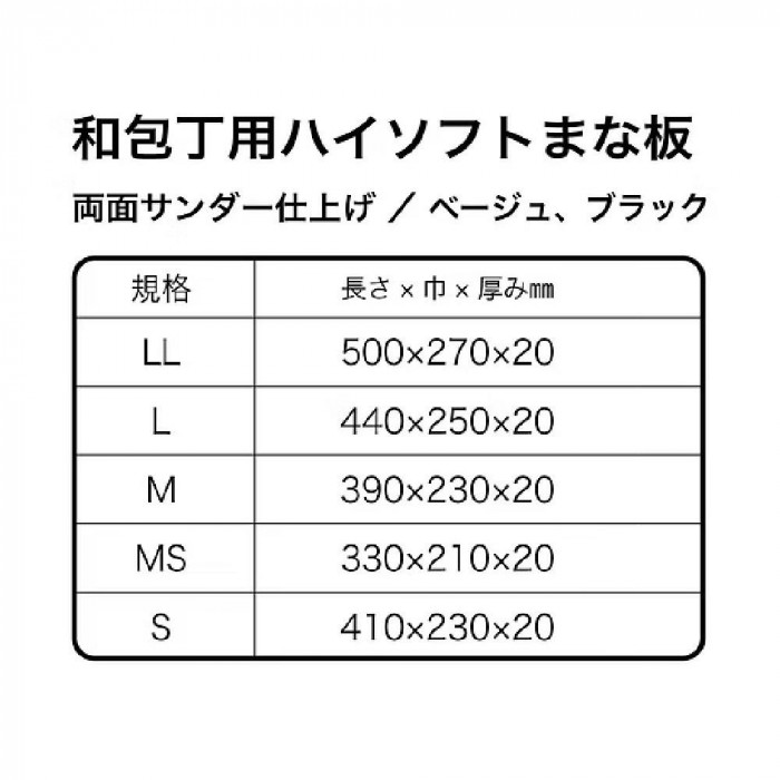 | 木製まな板と変わらない質感で、包丁の切れ味もグンと良くなります。小規模飲食店向けのコンパクトサイズで、取手付きタイプです。 ※時間指定不可(AM・PM明記のみ可)となります。 ※日祝祭日指定不可となります。 ※枚数やお届け先地域によっては別途送料発生する場合がございます。予めご了承ください。 |
