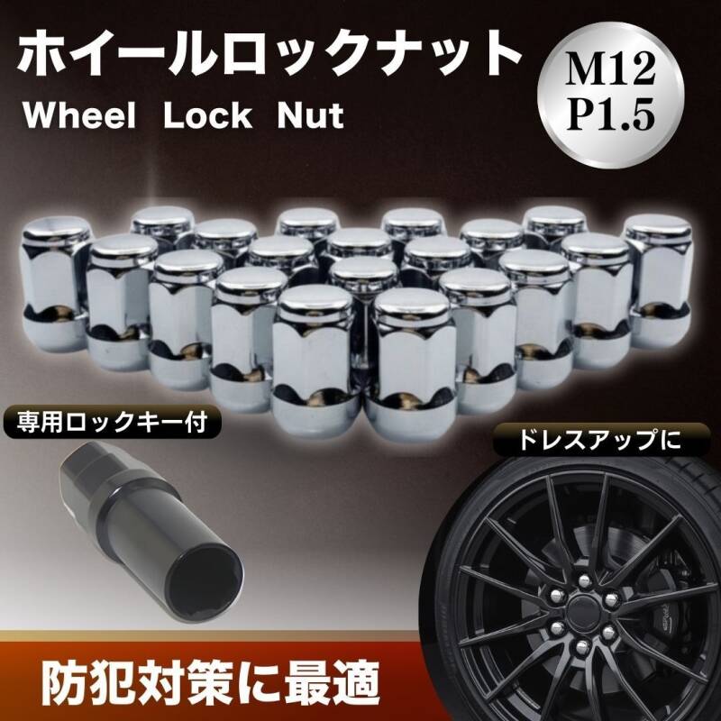 ホイールナット M12 P1.5 シルバー 20個 ロックナット付 盗難防止 袋ナット スチール製 19HEX 21HEX トヨタ ホンダ マツダ 三菱 ダイハツ 收藏