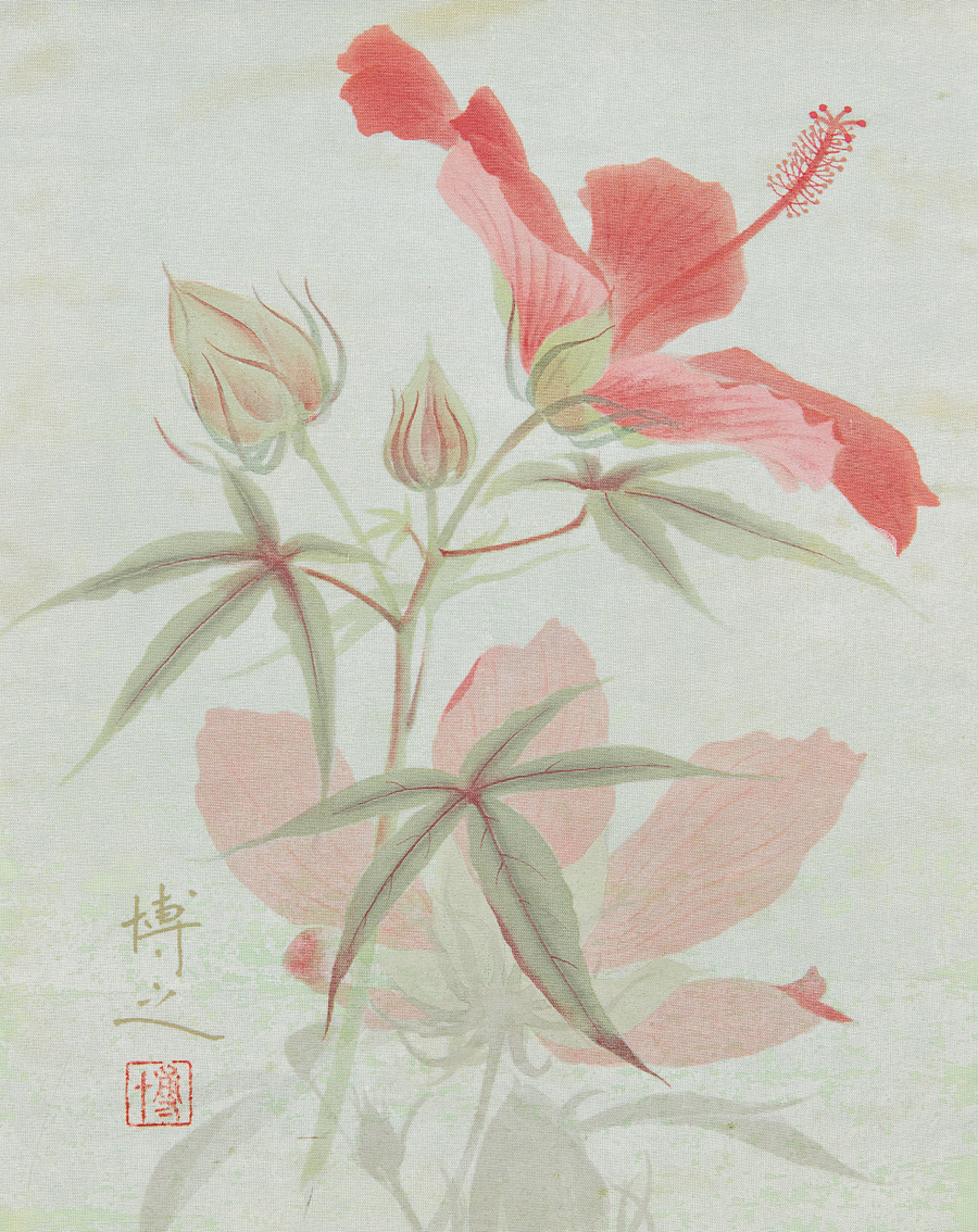 【1on1】真作 青山博之 『紅蜀葵』 日本画 彩色 3号 共シール 額装 ■ 日本美術院院友 山種美術館賞展招待出品 收藏