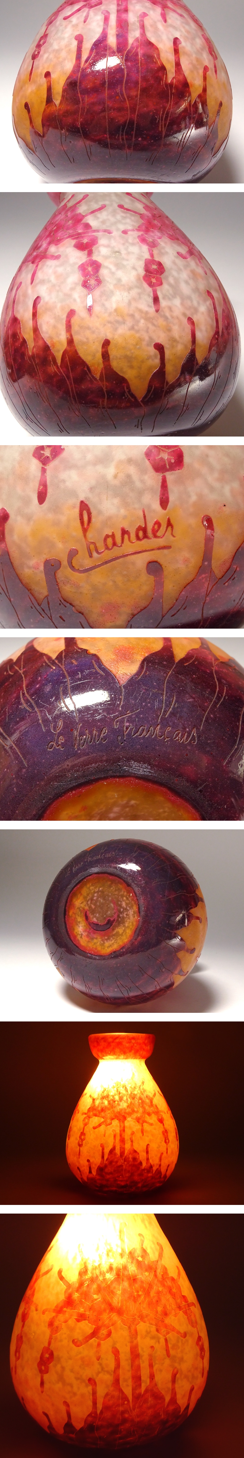 慶應◆1920-30年代【Schneider シュナイダー兄弟(シュネデール)】Charder/Le Verre Francais ル・ヴェール・フランセ アール・デコ 花瓶 收藏
