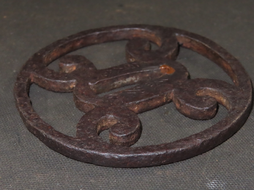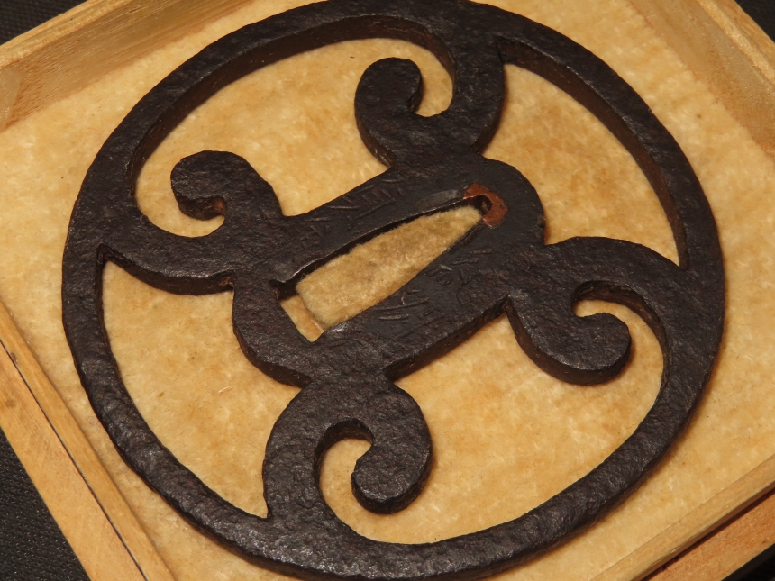 鑑定書 大刀波頭透鍔 紀州住貞命 江戸中期 鉄、透かし 箱付 8.5×8×0.5cm 110/170g 收藏