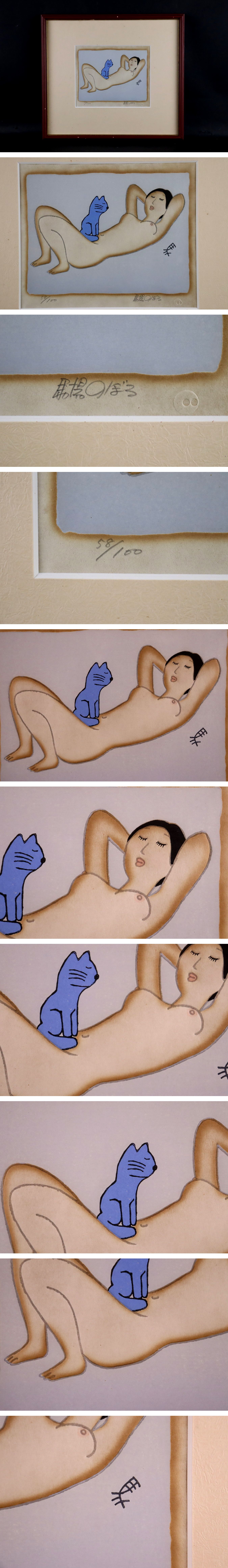 馬場のぼる 「裸婦と猫」 リトグラフ 直筆サイン有 児童漫画界の三羽ガラス 人気少年漫画家 真作保証 收藏
