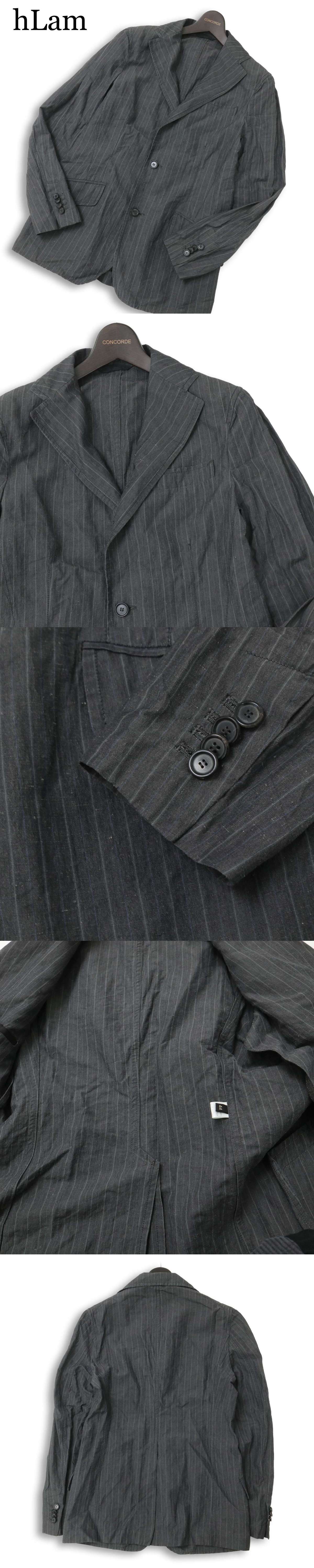 イタリア製★ HLAM ラム 春夏 麻★ リネン ストライプ テーラード ジャケット Sz.44 メンズ 灰 グレー 收藏