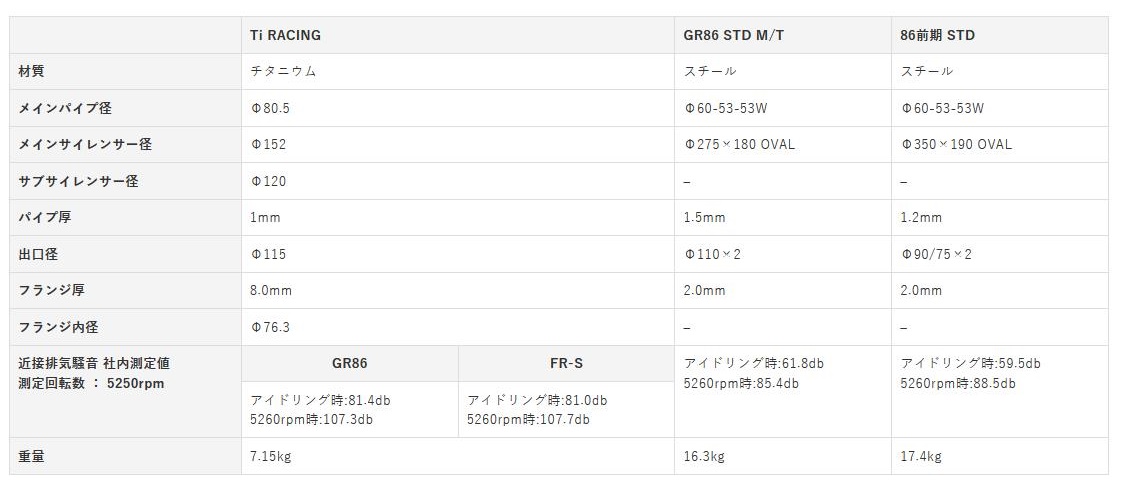 メインパイプΦ80の大迫力シングルレイアウトマフラー! ■メーカー: TOMEI(東名パワード) ■商 品 名: Ti RACING チタニウムマフラー ■車 種 : BRZ ■型 式 : ZC6/ZD8 ■品 番 : 441014 ■特 徴: ZN6・ZC6/ZN8・ZD8の両世代に対応するため世代差による車体レイアウトの違いを徹底的に検証し、設計を根本から見直した完全新設計のシングルレイアウトマフラーです。 既存モデルの延長や部分的な変更ではなく、全ピースおよびレイアウトを刷新しました。 市販最大径クラスφ80.5の大径メインパイプを採用しながら、最低地上高およびクリアランスを十分に確保。 純正比-9.15kgとなる軽量化と、無駄を排したシングルレイアウトが生み出す伸びやかな排気性能はアクセルを踏んだ瞬間に“違い”として体感できます。 ![]() ![]() ![]() ■構 成: ・メインパイプA ・メインパイプB ・サイレンサー ・サイレンサーバンドラバー ・サイレンサーバンド ・インナーサイレンサー ・ガスケット ・フランジボルト ・クランプバンド ・スプリング ・フランジナット ・ボタンボルト ・ボルトスムースペースト (1) ・6角レンチ (1) ■備 考:公道での使用は出来ません。 ■ メーカーホームページ |