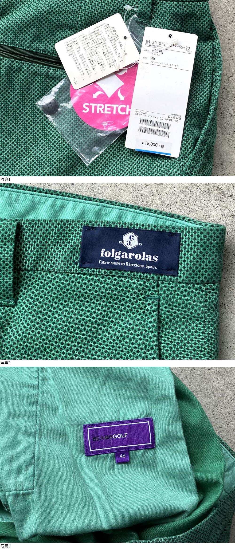 新品 BEAMS GOLF×folgarolas ストレッチ ゴルフパンツ 48 ビームスゴルフ ゴルフウェア メンズ スラックス 総柄 別注 コラボ スペイン 收藏