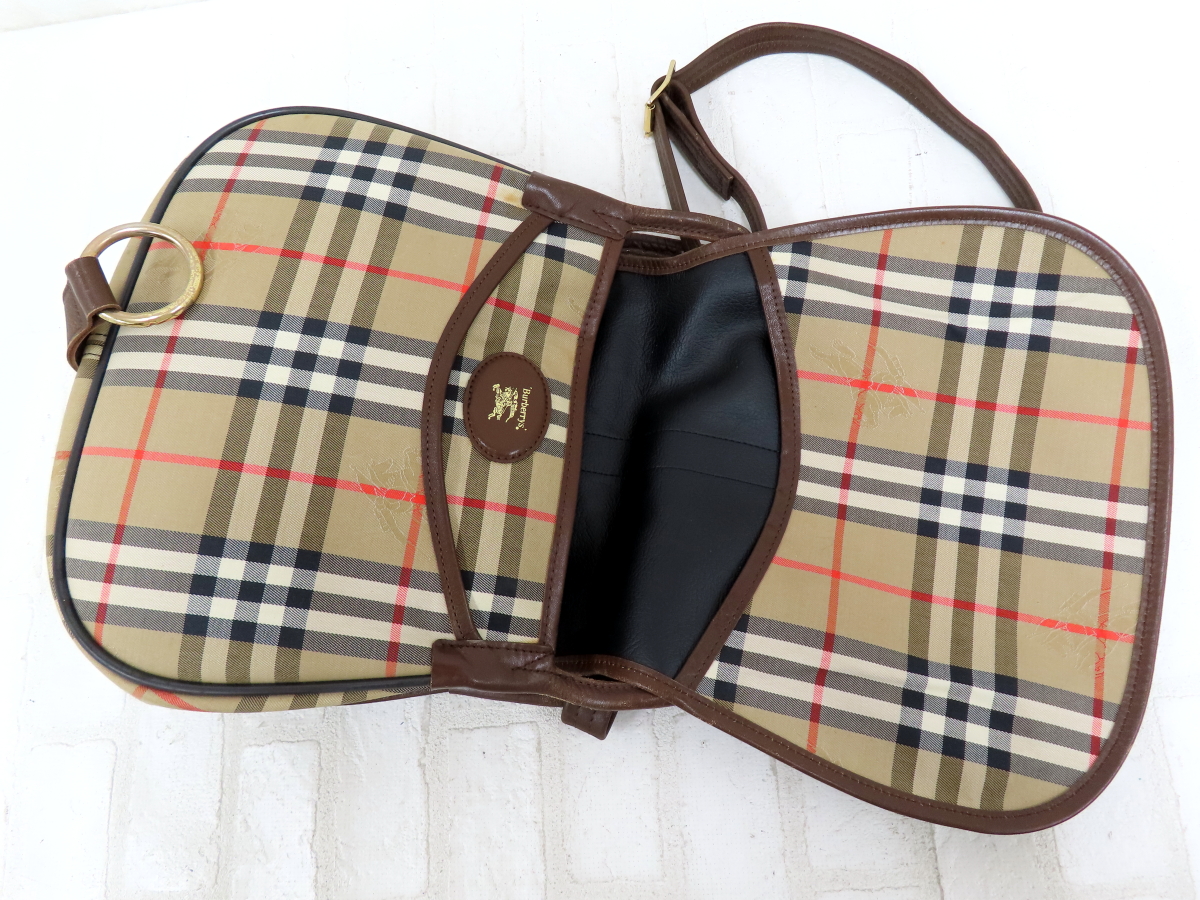 ◆BURBERRY バーバリー◆ノバチェック◆ナイロン カーフ レザー 本革◆ショルダー バッグ◆ベージュ ブラウン ゴールド金具◆A15854 收藏