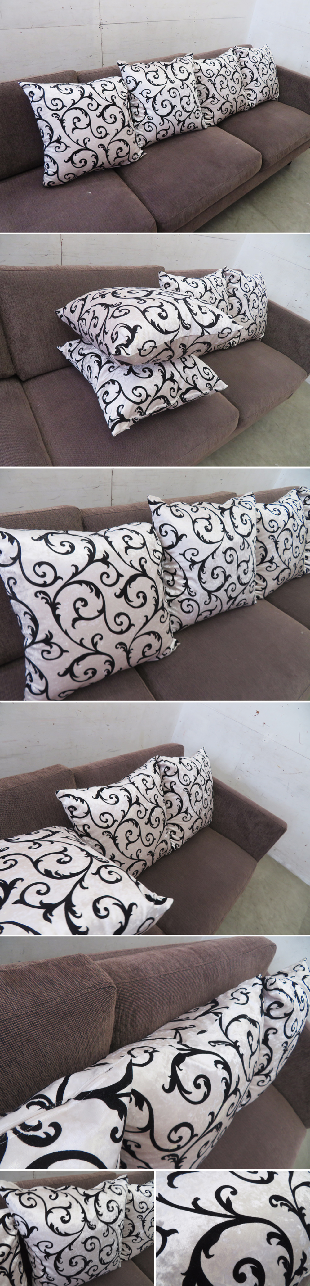 ■P499■展示品■アラベスク柄■クッション4個セット■綿■エレガント■モダン■モノトーン■ブラック/ホワイト■ 收藏