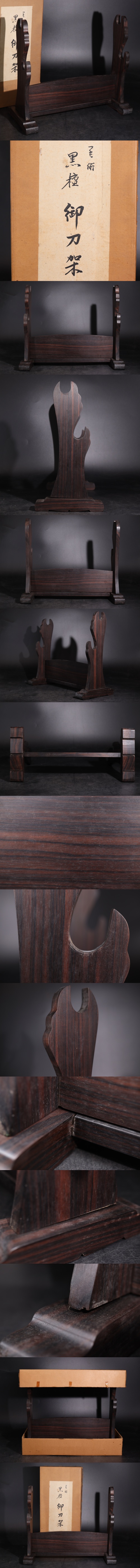 | 「 黒檀 御刀架 」 箱付 / 木製 木彫 刀掛け 刀装具 煎茶飾 .G3956 |