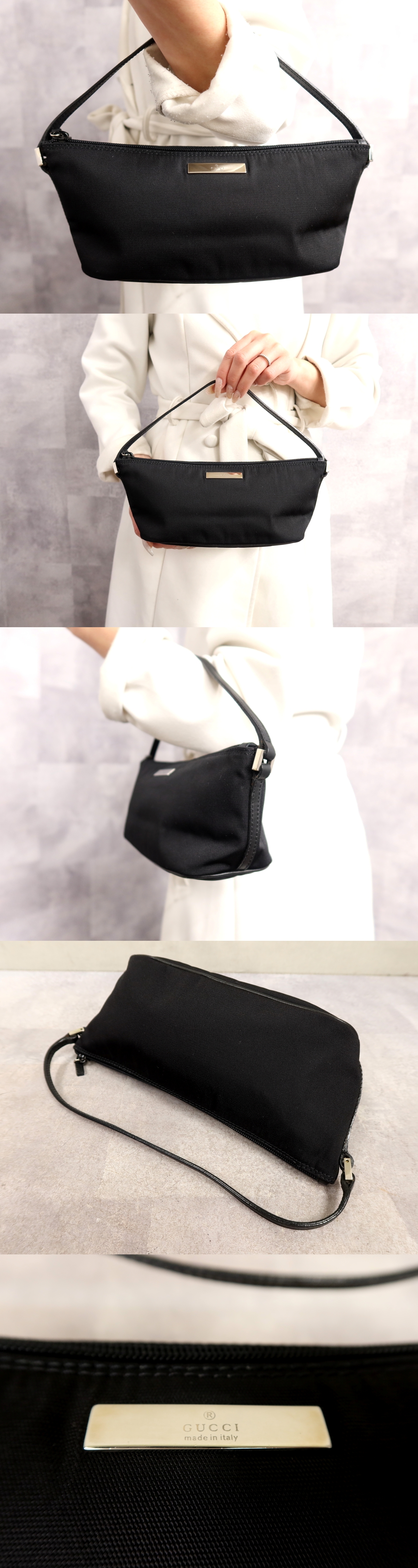 ●超美品●GUCCI グッチ●ナイロン カーフ レザー 本革●アクセサリー ポーチ ミニ ハンド バッグ●黒●シルバー金具●イタリア製●Js66380 收藏