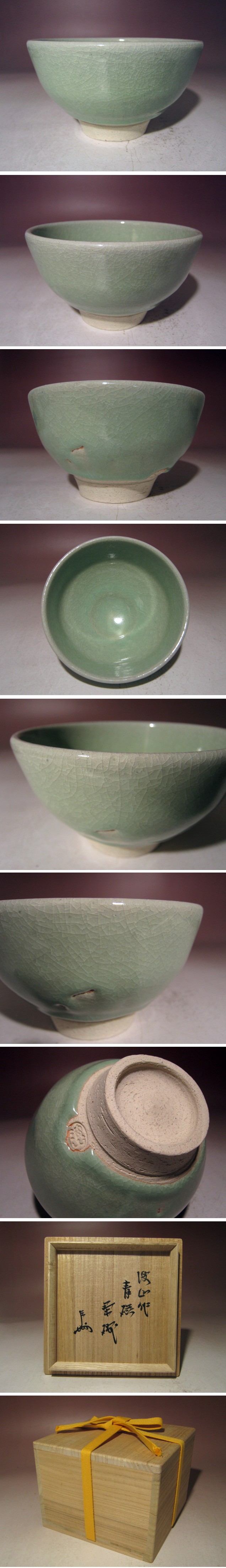※即決※ 板谷波山 青磁茶碗★表千家十三代即中斎花押★u942 收藏
