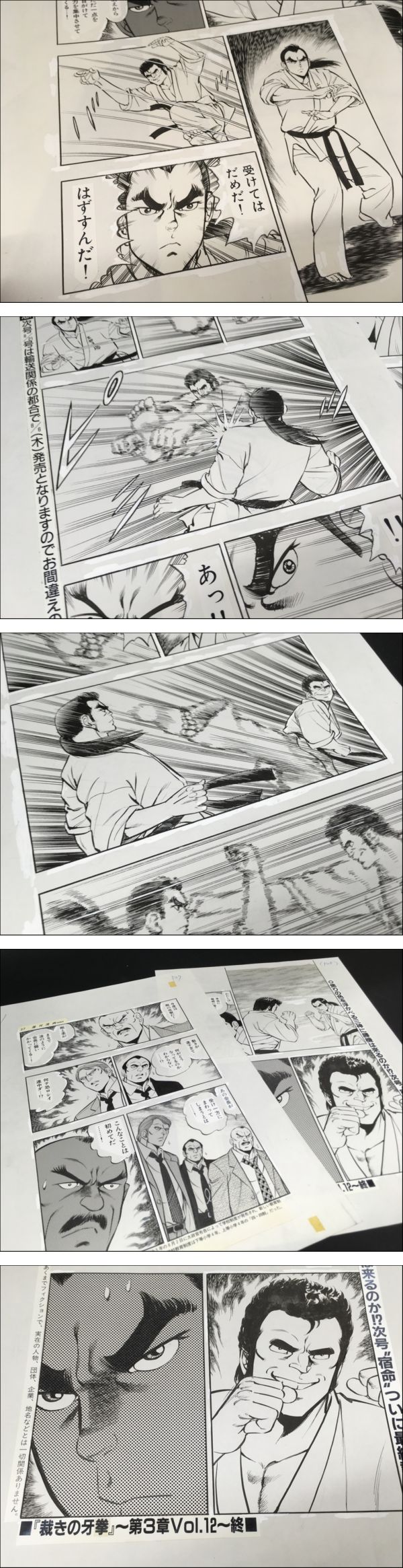 劇画原画(F)超本格武闘派劇画『裁きの牙拳 宿命第12話 全24頁揃』緒方恭二「週刊漫画TIMES」掲載/原画 原稿 肉筆 直筆 マンガ】