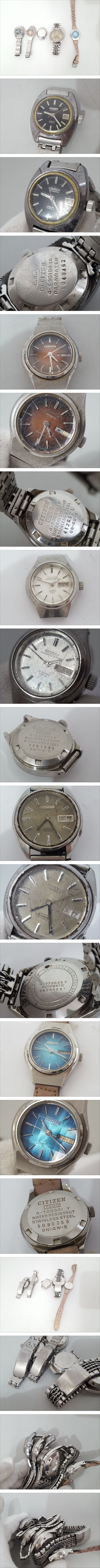※佐川急便の場合、離島など別途中継手数料がかかる地域が御座います。 その場合はお振込みを追加でお願いする場合が御座います事、 事前にご了承の程、宜しくお願い致します。 [商品名] 1円スタート 【ジャンク品含む】CITIZEN シチズン 自動巻き 腕時計 5点セット [参考サイズ:左の時計] ケース(リューズ込み)約3×2.7cm, 風防(ガラス/樹脂面)直径約1.8cm, ベルト幅約1.2cm, 腕周り約15cm [型番] 左から