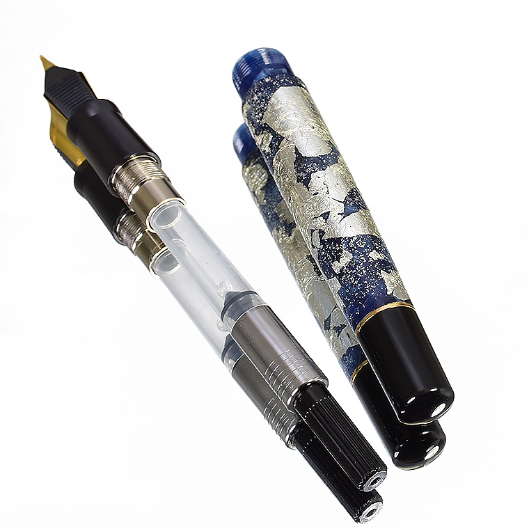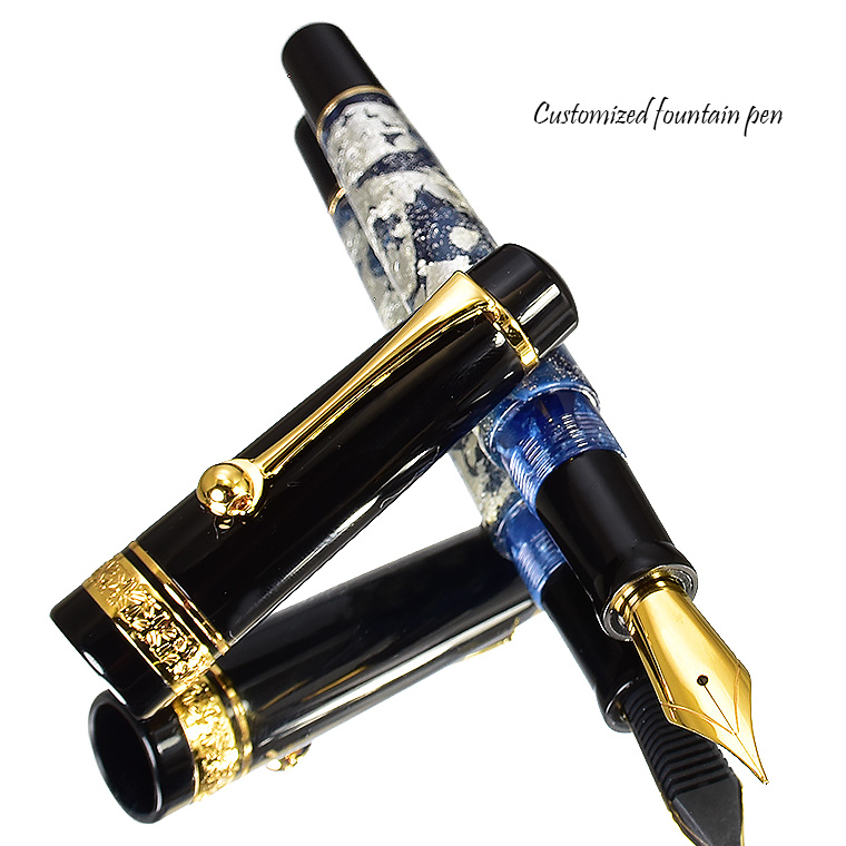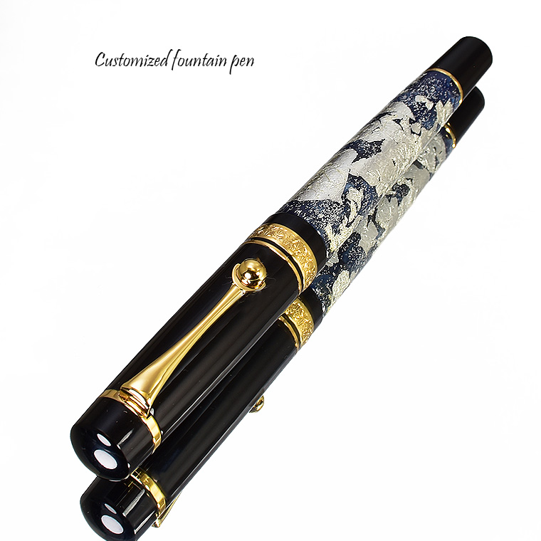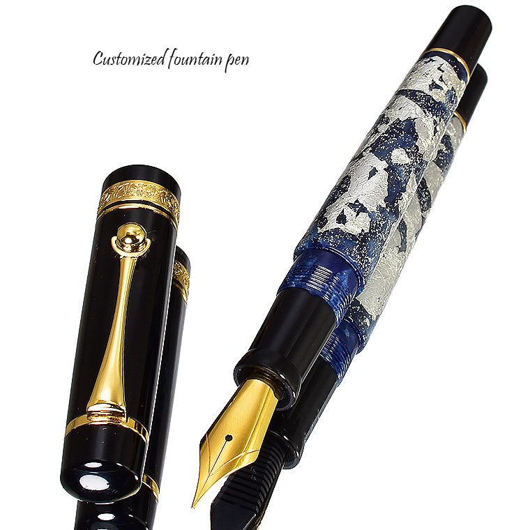 ■●【特別限定品 カスタマイズ万年筆】ネイビー軸 蒔絵調装飾 漆塗り 銀箔・ラメ装飾 ペン先: EF(極細)豪華絢爛 紺 新品 1円~ /M709NVd 收藏