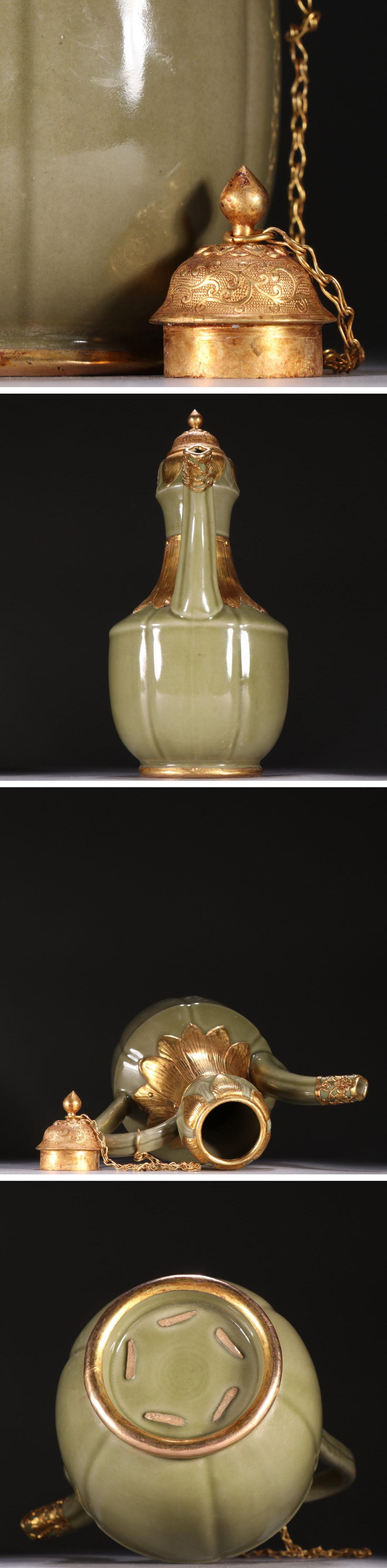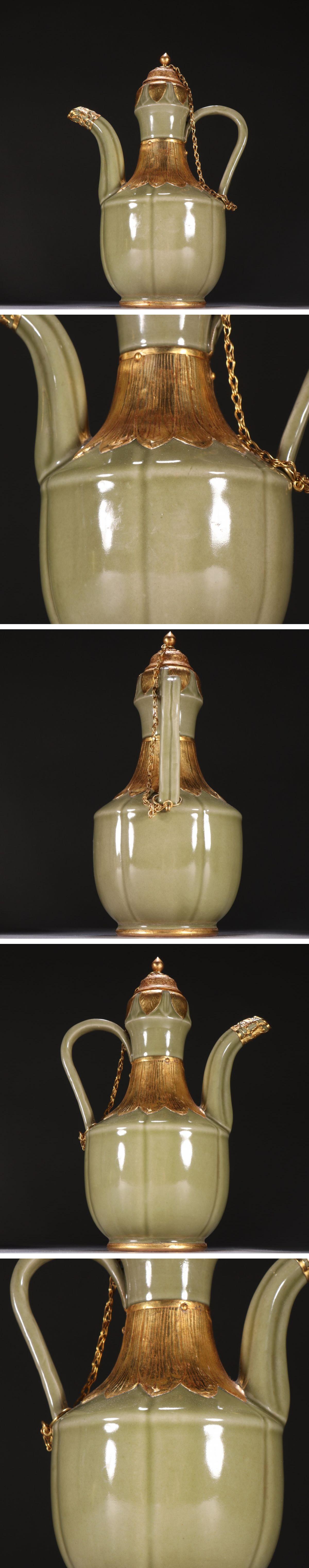 【雲錦】1円から 時代物 龍泉窯 包金口徳利 古酒壺 中国古陶器 古美術 骨董品8L0-278AM15