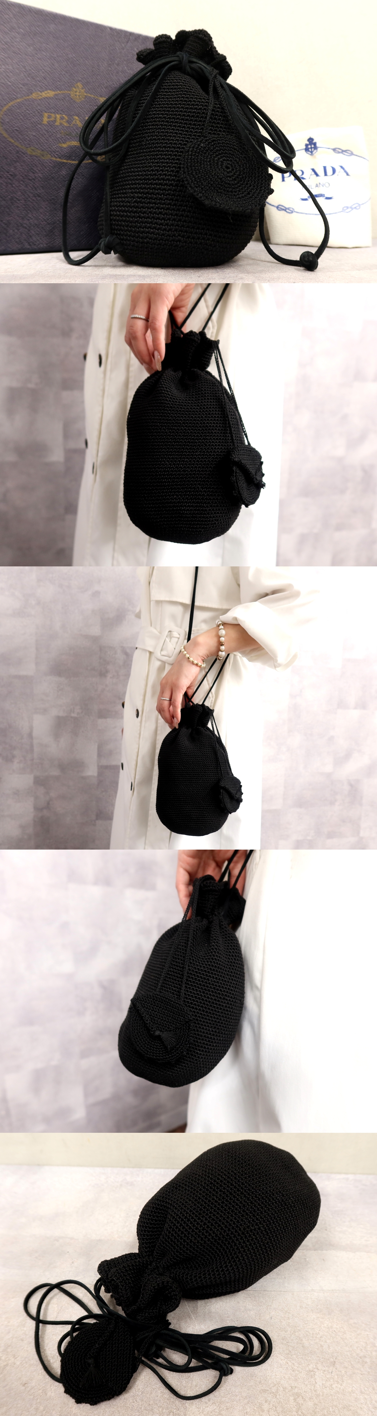 ●超美品●PRADA プラダ●チャーム●メッシュ●巾着 ショルダー バッグ●黒●肩掛け●イタリア製●収納 かばん●Js67323 收藏