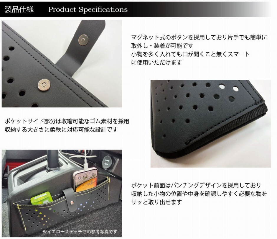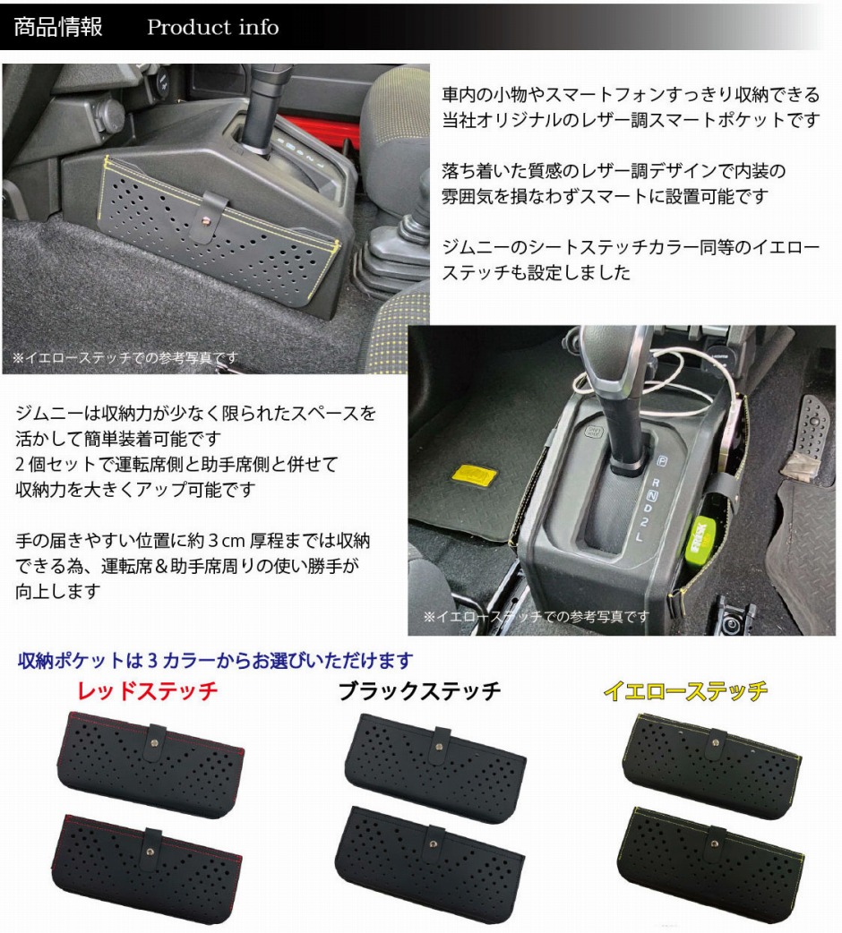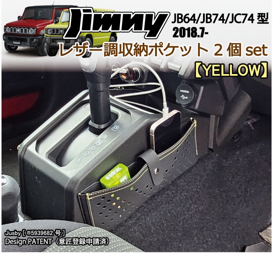 ジムニー JB64 74 JC74 スマート収納ポケット(黄色ステッチ) 2個セット レザー調センタートレイサイド小物入れ 収納 JIMNY シエラ ノマド用 收藏