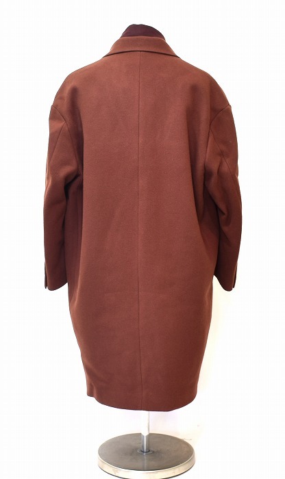 ・素材:ウール96% コットン4% / 裏地:キュプラ100% ・カラー:バーガンディ ・サイズ:M 実寸 肩幅 約59cm・身幅 約66.5cm・着丈 約104.5cm・袖丈 約57cm(多少の誤差はお許しください) ボリューム感・オーバー感をしっかり残したコート。 しっかりとしたハリのある素材で立体的なシルエットを形成しています。 シンプルなフェイスながらも、「変化させて楽しむ仕掛け」のコートとして、 ラペル襟裏にスリットが施されてあり、自由にストールやマフラーをとおすことで、新たな変化によるスタイリングを楽します(同色のストールのみ付属)。 シンプルに着ても、お持ちのストールとつけ替えても・・・色々なスタイリングが楽しめます。 新品 タグ付き 定価¥80300(税込) かなりお値打ちだと思います。この機会にぜひ!。 他にもいろいろ出品しています。 管理番号:252202MY-088332 N8 ★ PD242402-2000 |