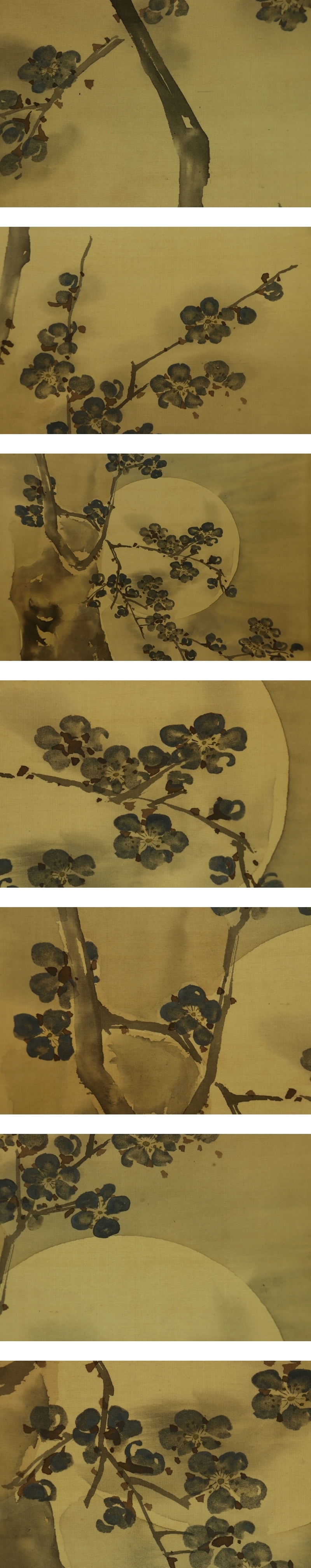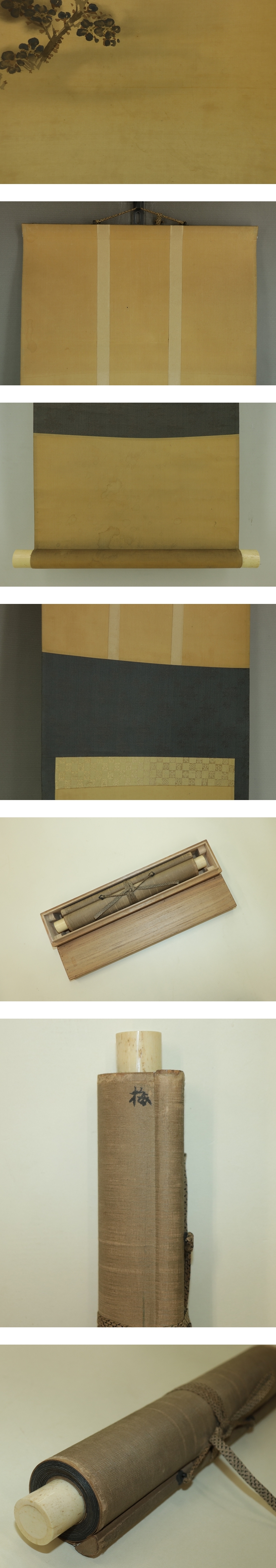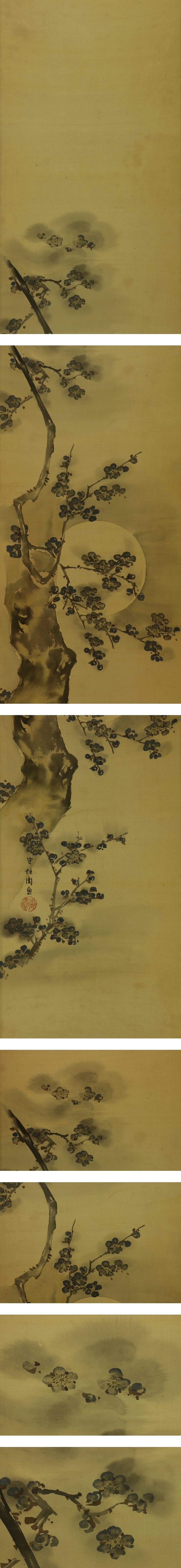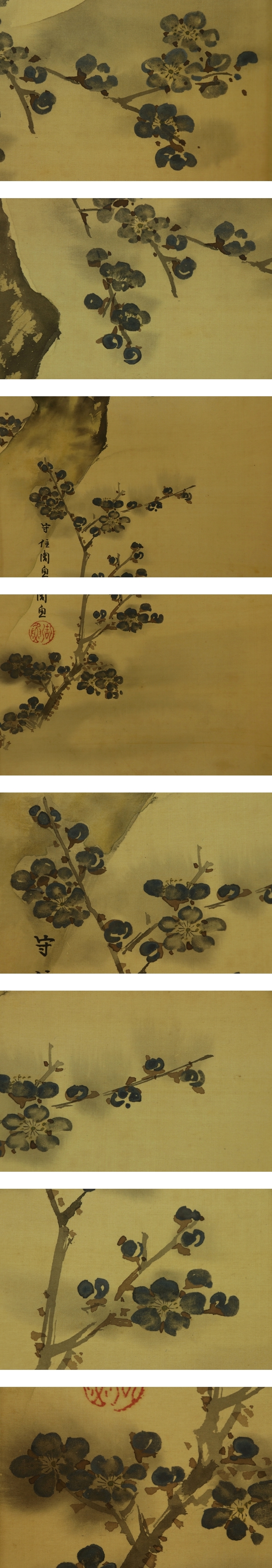 | №2307010【真作】守住周魚【月下梅図】◆絹本◆合箱◆掛軸 | |