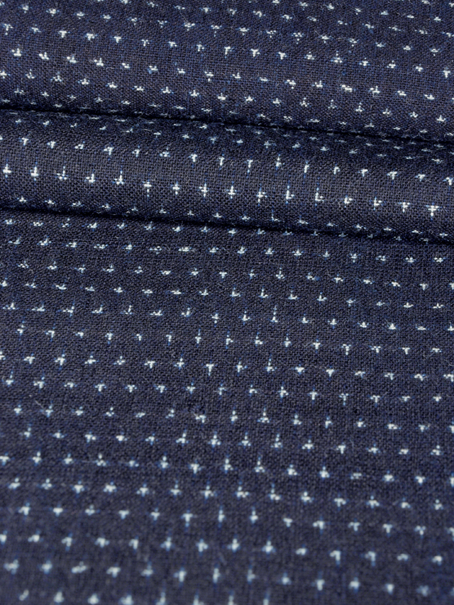濃藍(こいあい)色の地に絣で十字の文様が織り込まれた、綿絣のはぎれです。 昭和初期ごろにつくられたと思われるアンティークのお品です。やや地厚のややざっくりとした手ざわりの綿地です。 目につくしみやよごれ、褪色、穴などのダメージはなく、とてもきれいな状態です。生地の力もあります。※風楽の出品内で同じ柄のものを複数出品している場合もあります。 |