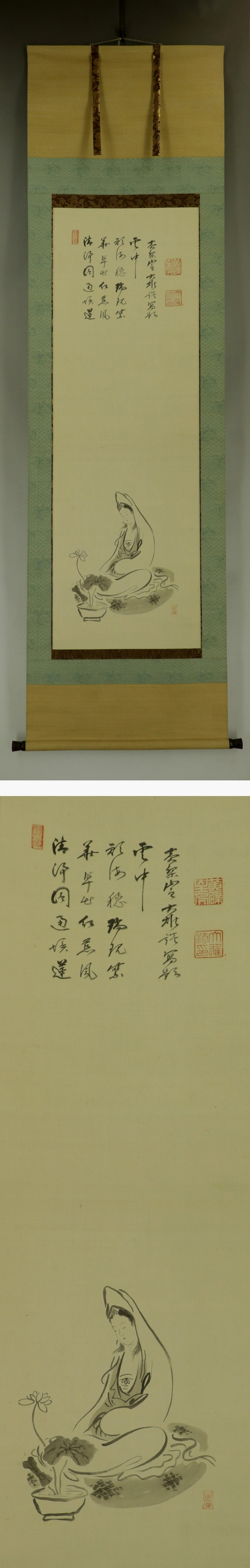 №2409029【模写】黄檗大雄【観音菩薩画賛】◆絹本◆合箱◆掛軸 | |