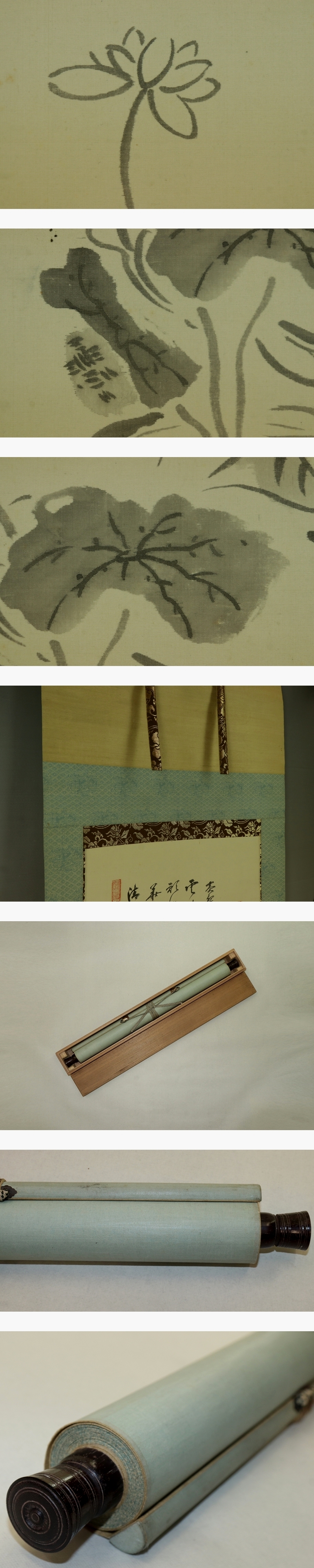 黄檗大雄 黄檗山万福寺四十六代管長。奈良県生。姓は隆琦、号は甘王、法諱は弘法。 南山城甘南備寺大心について出家・嗣法した。 大和の蓮昇寺、河内の法雲寺に歴住。昭和4年(1929)寂、81才。 本紙は、染み、軽い汚れ、軽い皺、軽い浮きがあります。 表装は、染み、汚れ、軽い皺、虫食い、ほつれがあります。 【サイズ】 作品 横約42cm×縦約126.5cm 表装 横約56.5cm×縦約203cm |