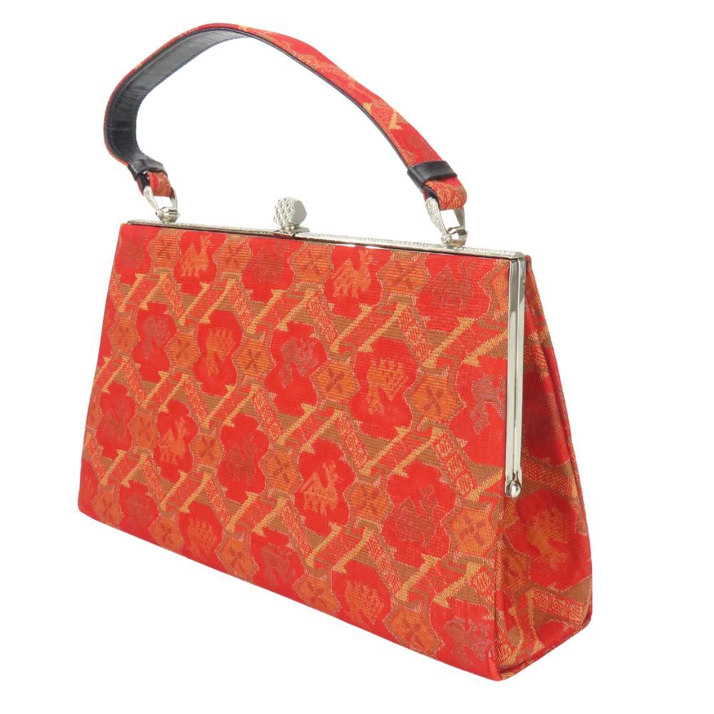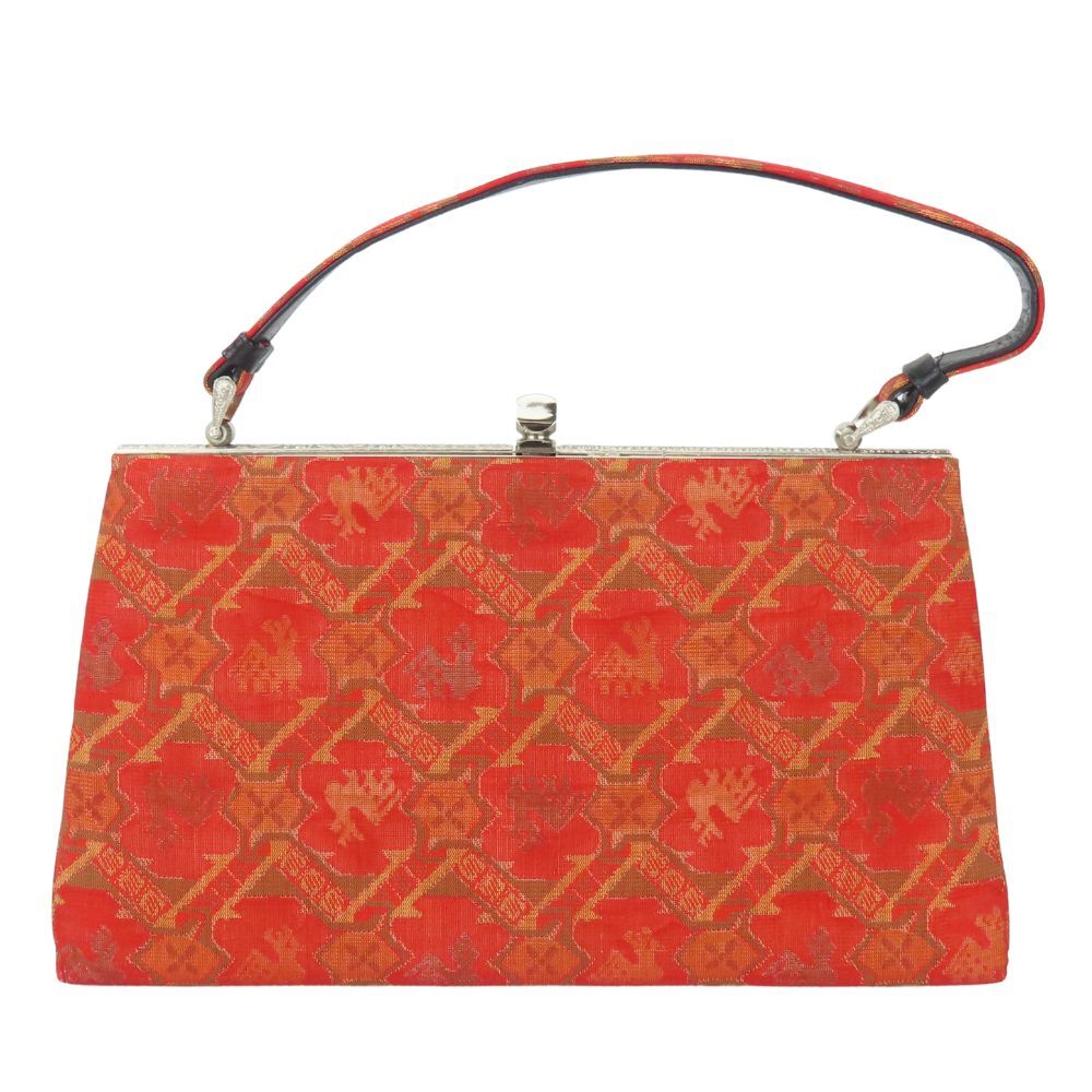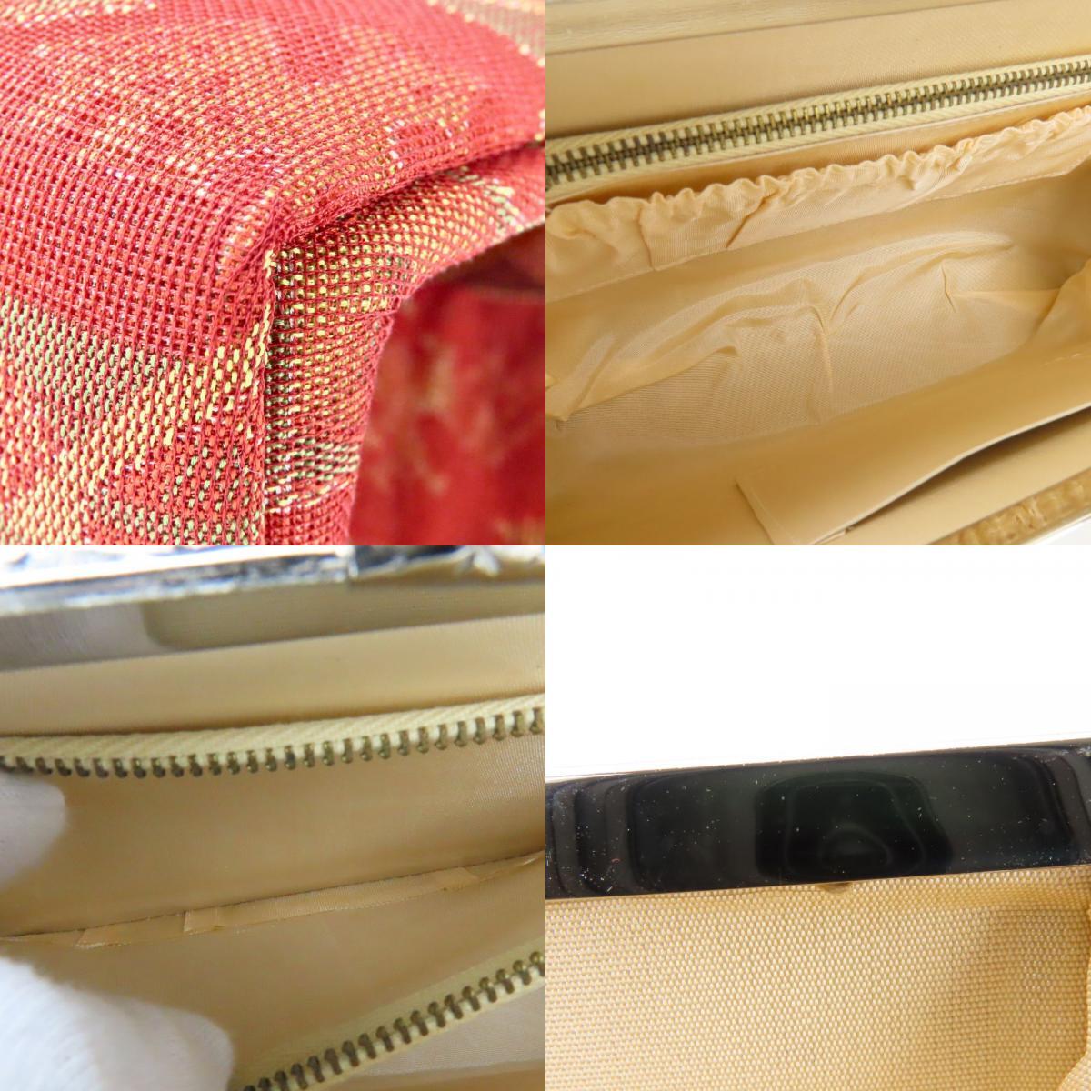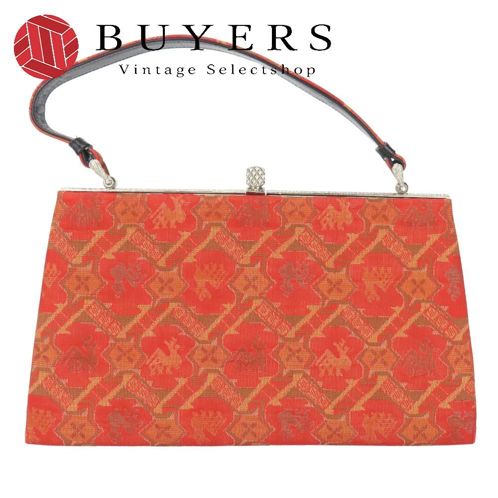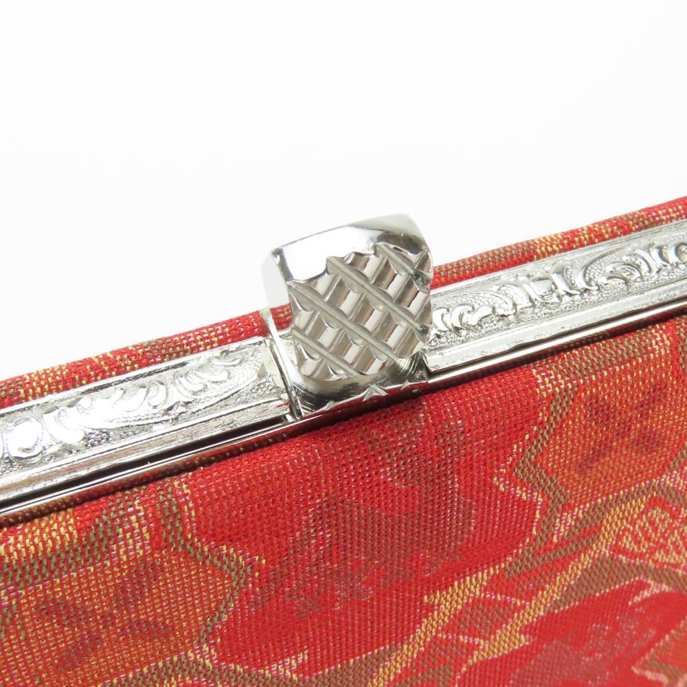 中古 和装バッグ ポリエステル レッド系 シルバー金具 有栖川鹿文 フォーマル 着物 和装 呉服 和服 きもの レディース 女性 收藏