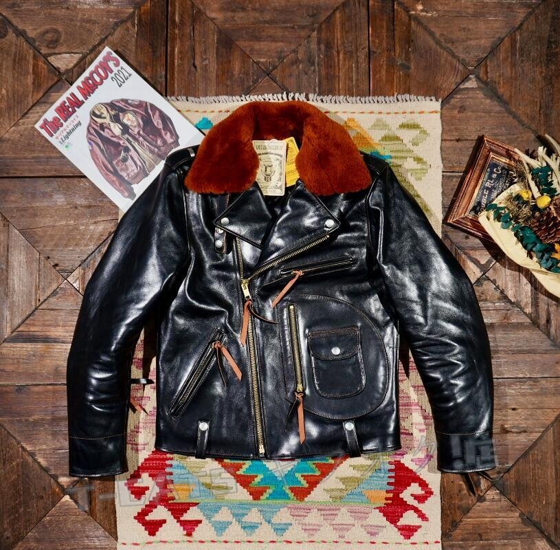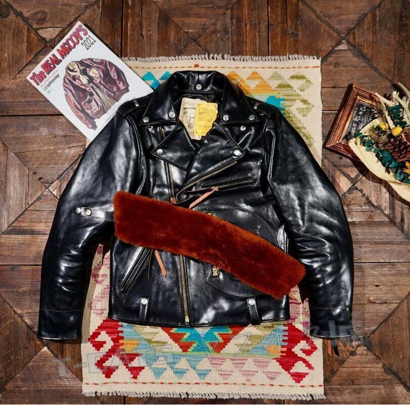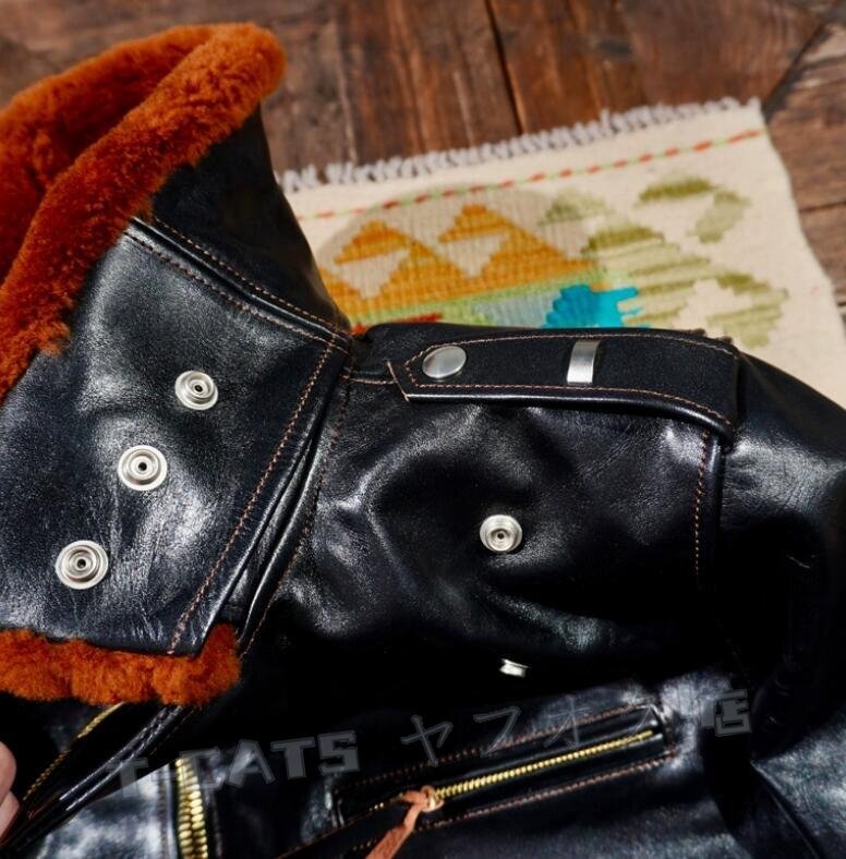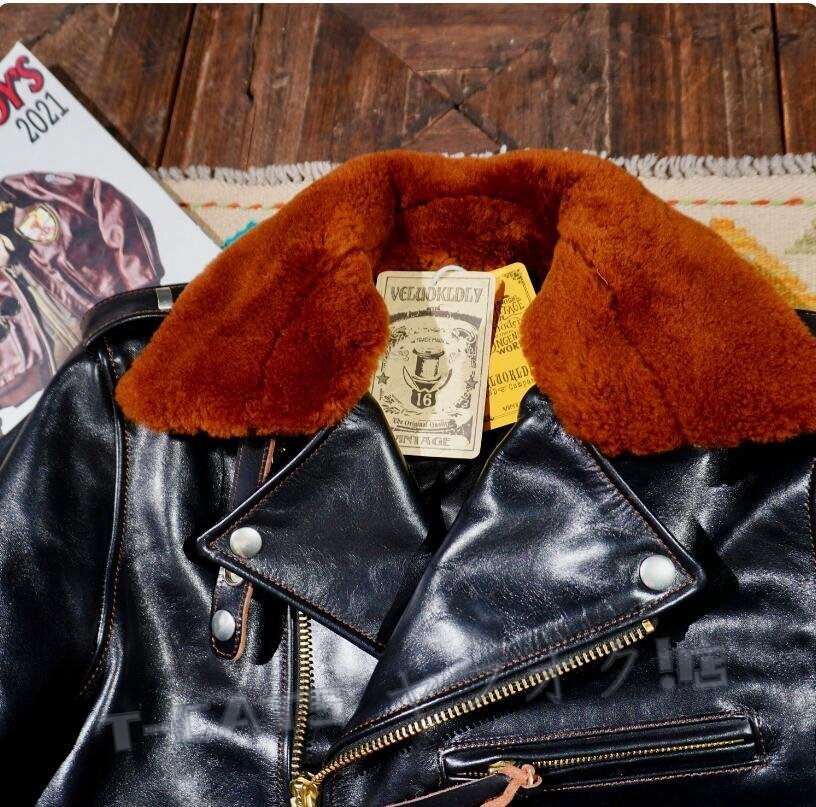 ☆新品高品質牛革 茶芯 レザージャケットカウハイド本革革ジャンダブルライダース羊革毛皮一体襟 中綿 メンズファッション アメカジ S~4XL 收藏