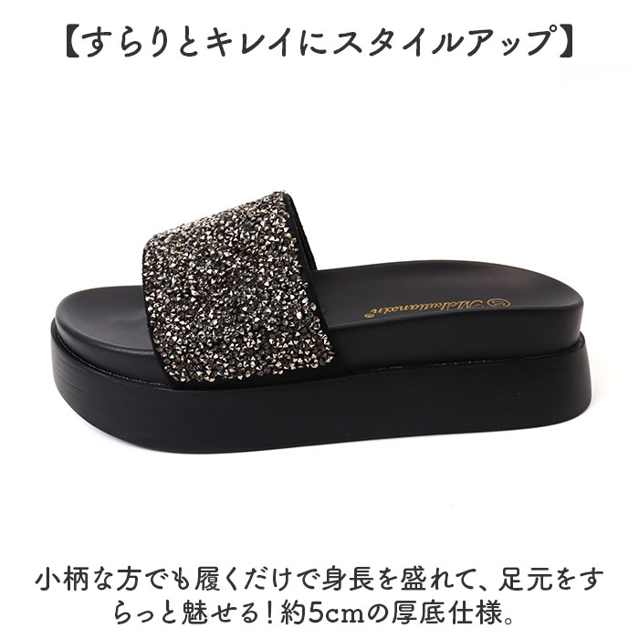 | 商品説明 | ・・【夏のお出かけでヘビロテ間違いなし】 ・サッと履けてストレスフリー◎おしゃれにキマる「レディース用厚底サンダル」。 ・【色んなコーデに素敵にマッチ】 ・アッパーに光沢のあるパーツを敷き詰め、シンプルながら上品♪キレイ目にもカジュアルにも! ・【すらりとキレイにスタイルアップ】 ・小柄な方でも履くだけで身長を盛れて、足元をすらっと魅せる!約5cmの厚底仕様。 ・【いつでもどこでも脱ぎ履きスムーズ】 ・バンドなどがなく、スッと足入れOK。急いでいる時もササっと履けて、すぐ脱げる◎ ・【汗ばむ季節もサラッと快適】 ・つま先が開いたオープントゥデザイン。全体的に開放感があり、ペディキュアも映える♪ ・【安定性があり、移動もラクラク】 ・しっかり厚みがありつつ、ほぼフラットで安定感をキープ!歩きやすく疲れにくいのが嬉しい! |