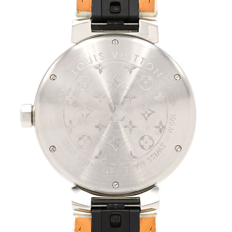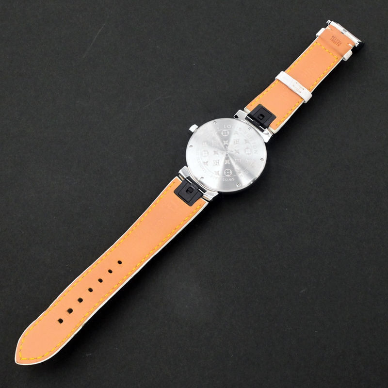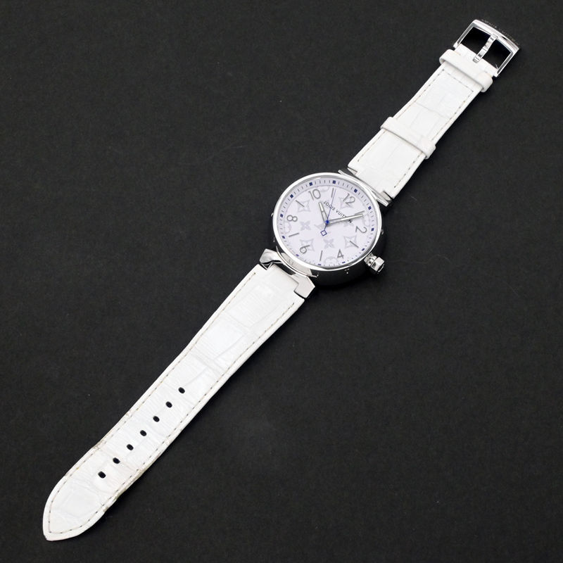 [3年保証] ルイヴィトン タンブールGM モノグラム ホワイト QA114Z ギャラ付き ロゴ 白文字盤 革ベルト クオーツ 腕時計 中古 送料無料 收藏