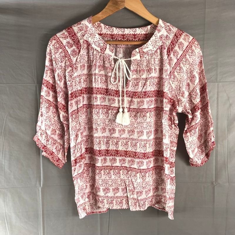 スマートピンク smart pink カットソー 七分袖 リボン タッセル アラベスク柄 ボタン袖 白 赤系 40サイズ 2025071600162 收藏