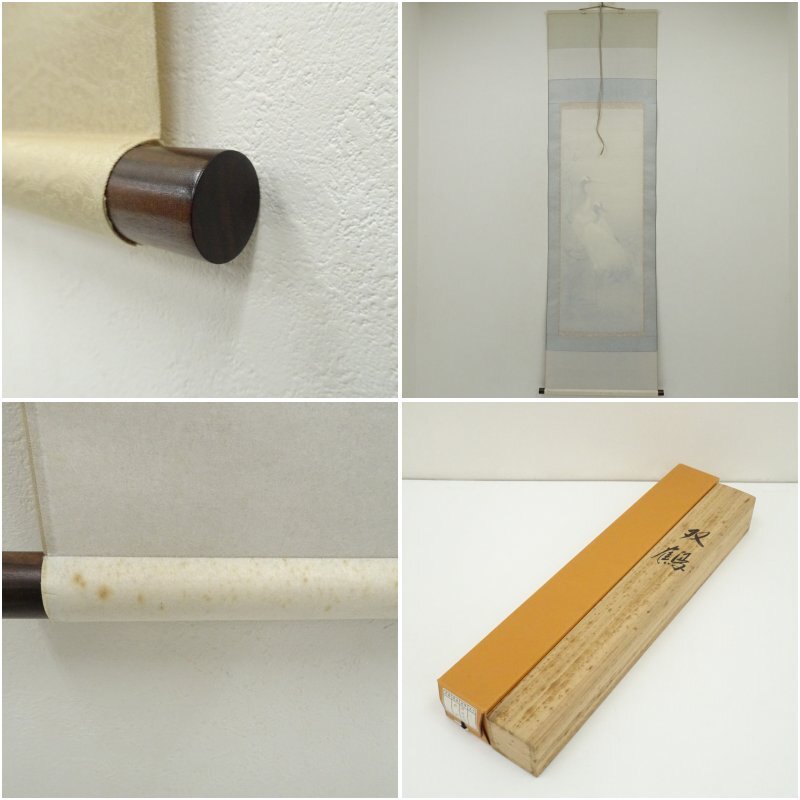 野田雪邨筆 双鶴 肉筆絹本掛軸(共箱) 收藏