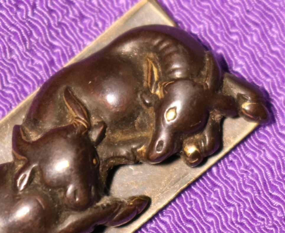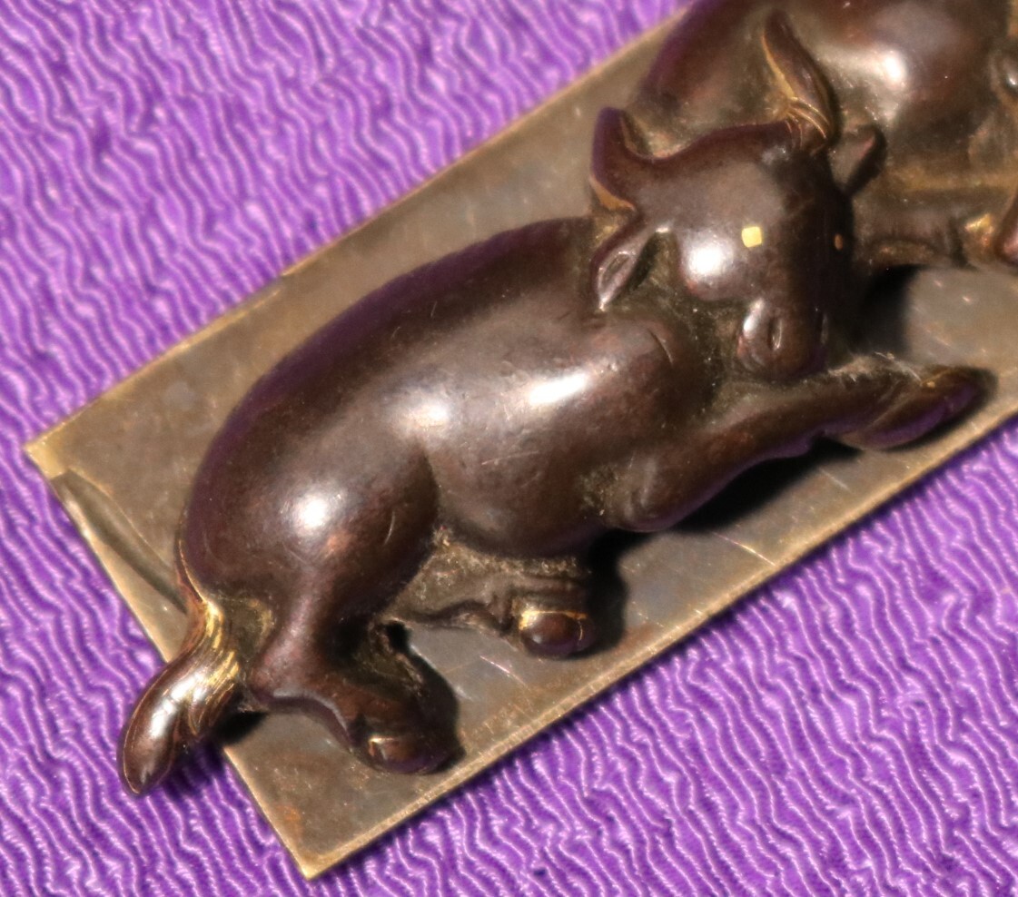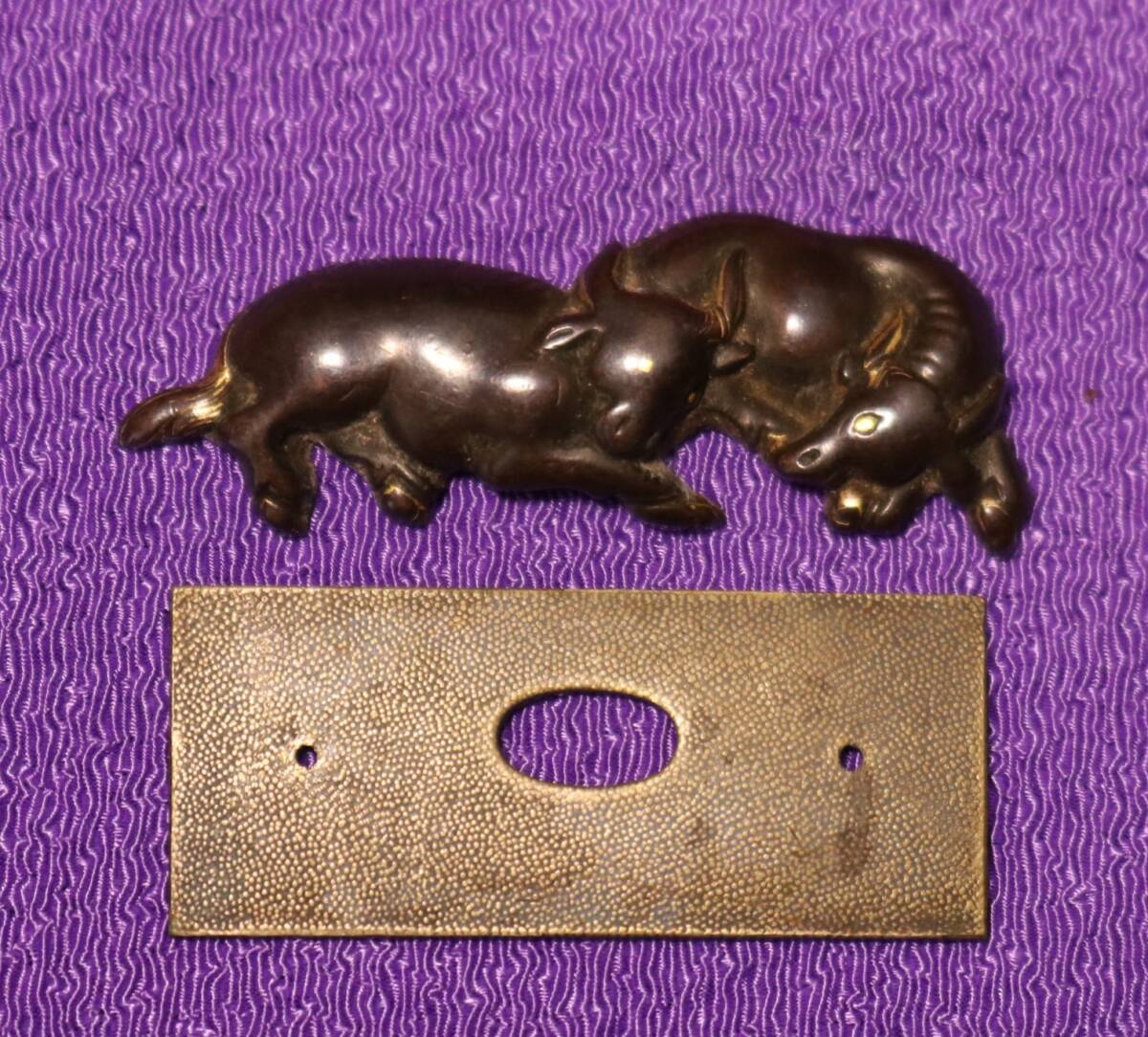時代目貫、金彩入、古銅~闘牛~煙草入用